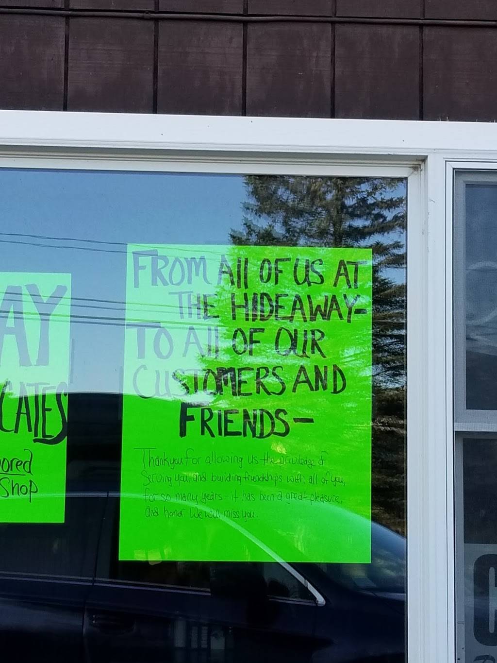 I absolutely love the hideaway! Such friendly wait staff, amazing dinner food, and a small town atmosphere. They provide the ultimate comfort food! Also they have some of the best desserts. Awesome homemade food. And bonus, they are super cheap!
