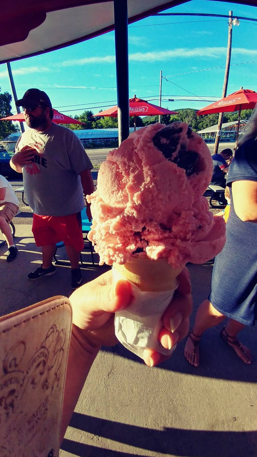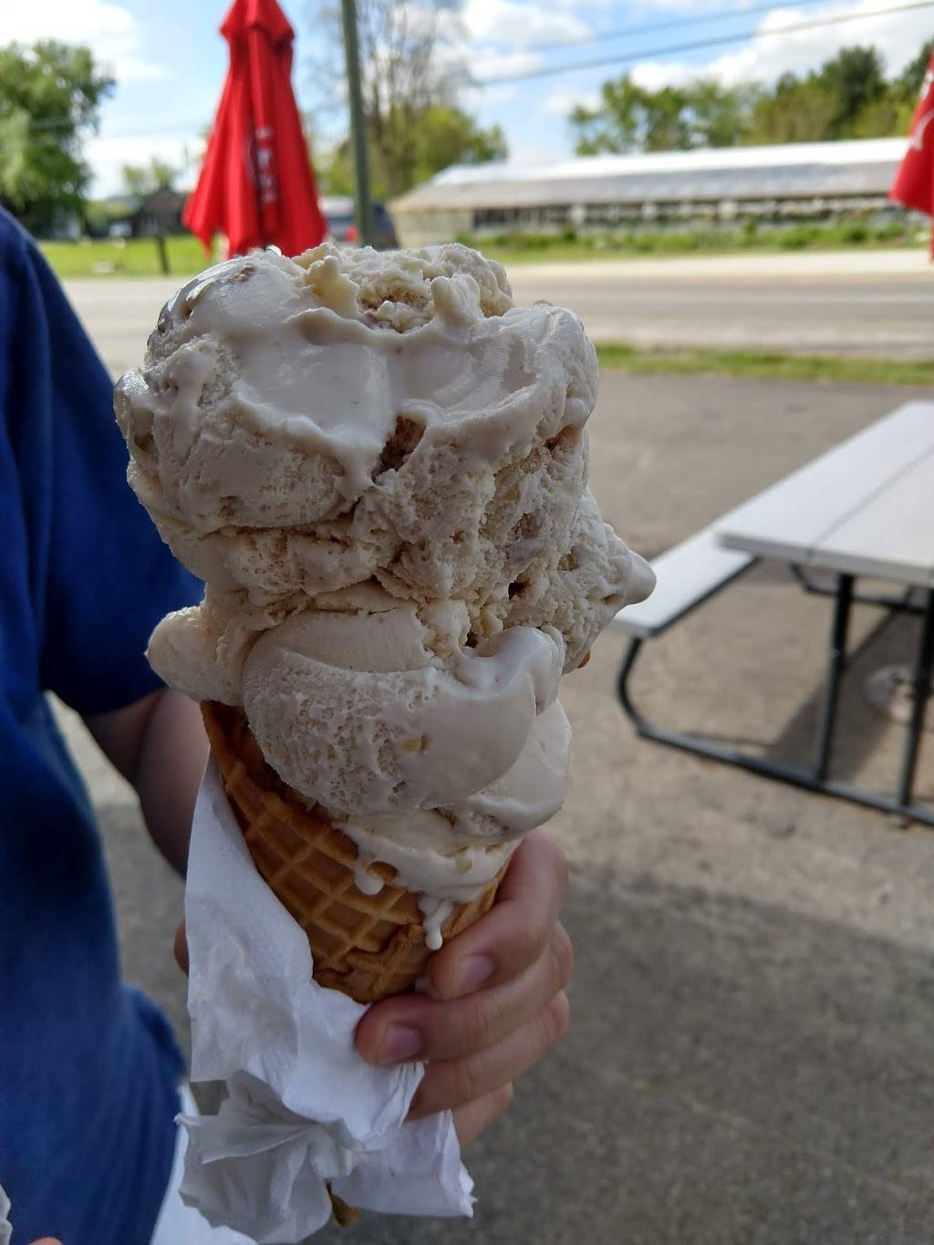 I love Riley's. Although Riley's is seasonal (late Spring to early Fall), I cannot wait for them to open and am always sad to see them close. Their icecream is fine, but their food is the main reason I visit them. (Simple diner grill type food) I would recommend that you always order their potato or macaroni salad. Homemade and delicious. They have a small indoor eating area, and picnic benches outside.