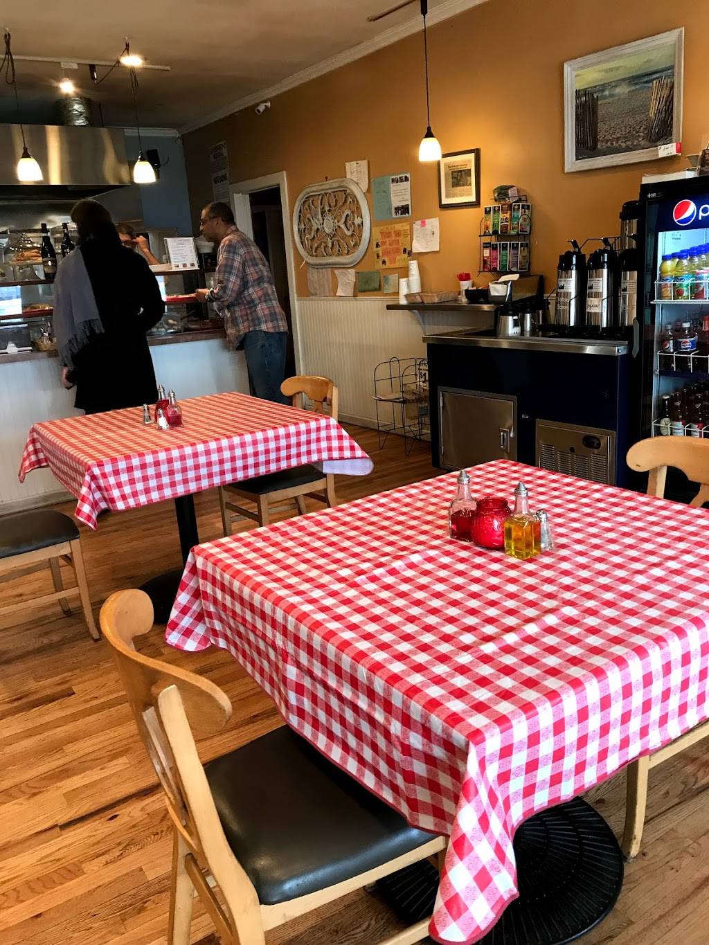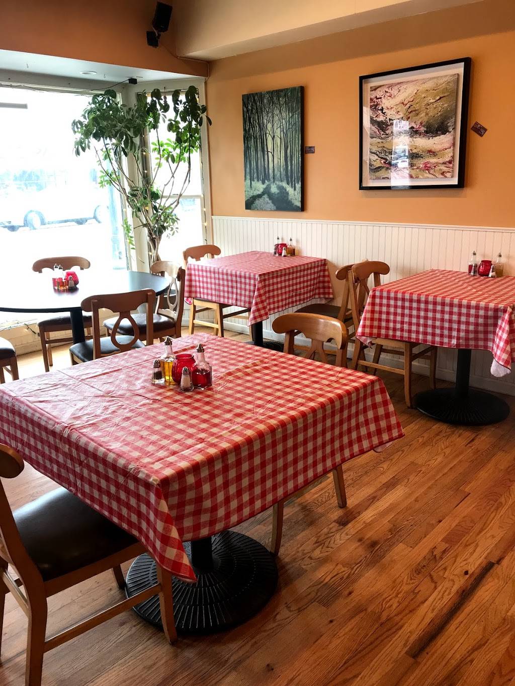 Awesome food from pizza to delicious Italian entrees. They have tables to eat indoors as well. Also, for nicer weather there's a back outdoor patio with string lights which is so cute.