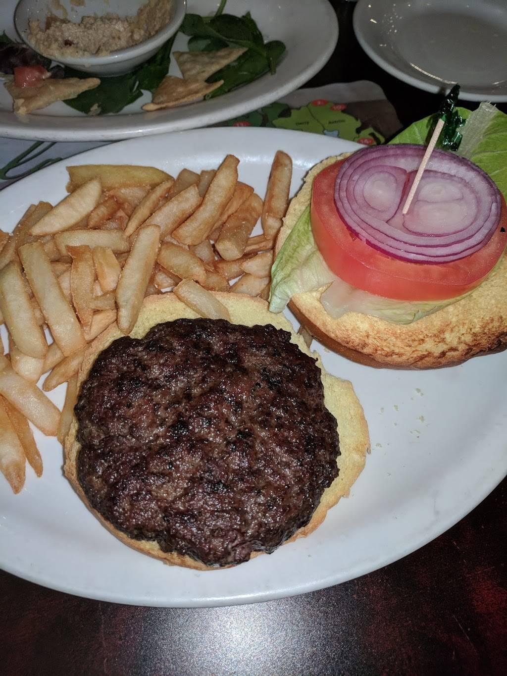 I had the $5 hamburger for lunch. It came with lettuce tomato onion and pickle with a side of fries. It was one of the best hamburgers I've ever had and the fries were great crunchy not greasy. My daughter had the $5 grilled cheese which also came with a side of fries it was on marble rye. She also said it was great. Best $5 lunch around.