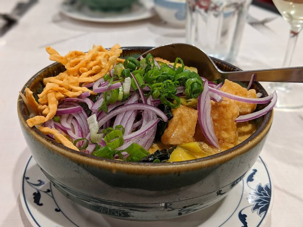 Lovely Thai place: delicious food, reasonable prices, clean and pretty restaurant. The spicy basil chicken was wonderful, a little sweet and just the right amount of spicy (I ordered it medium-spicy).