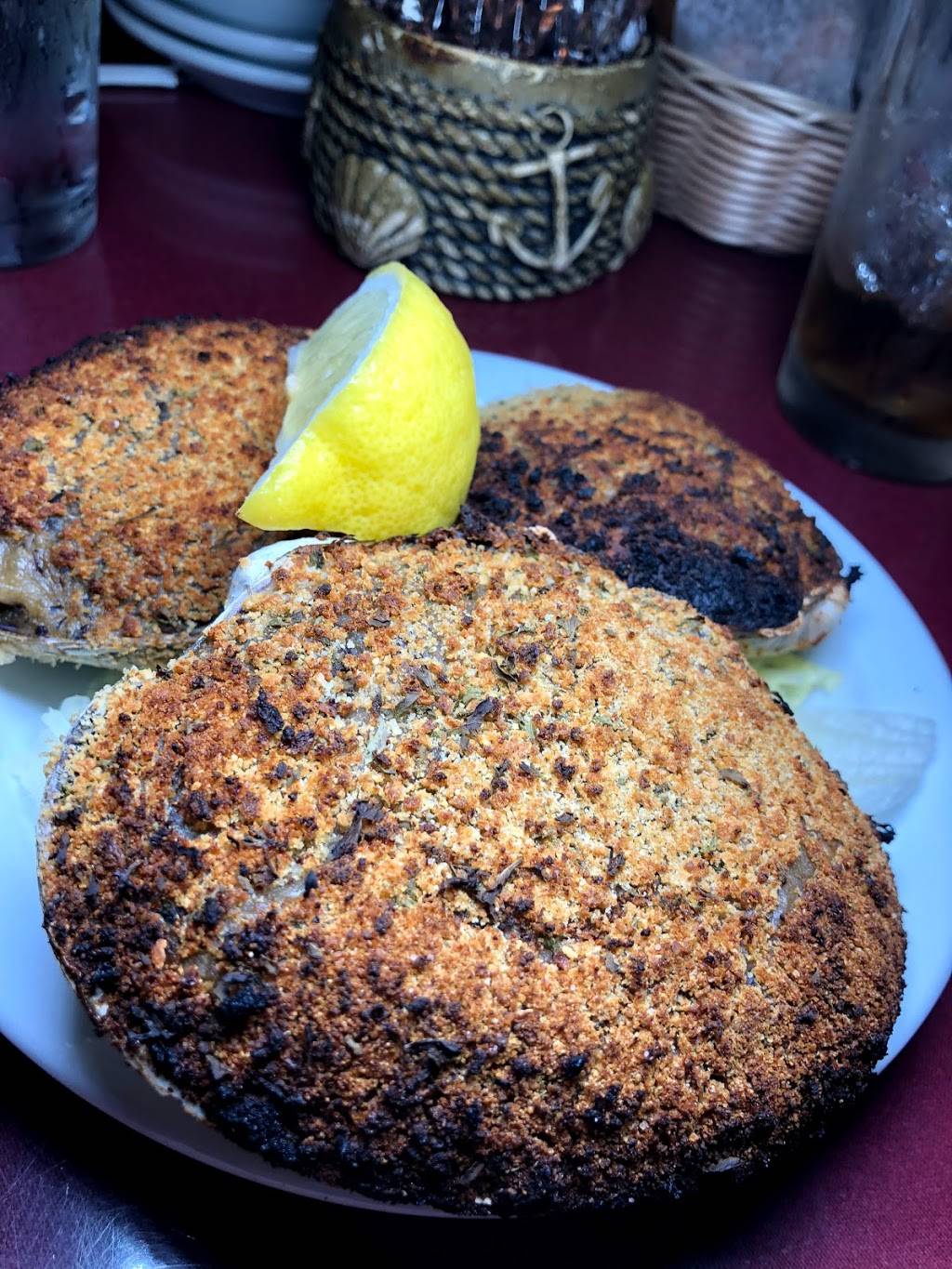 This Long Island landmark never disappoints. Staff is friendly and attentive. We had fried calamari, baked clams and steak burgers. Off the charts!
