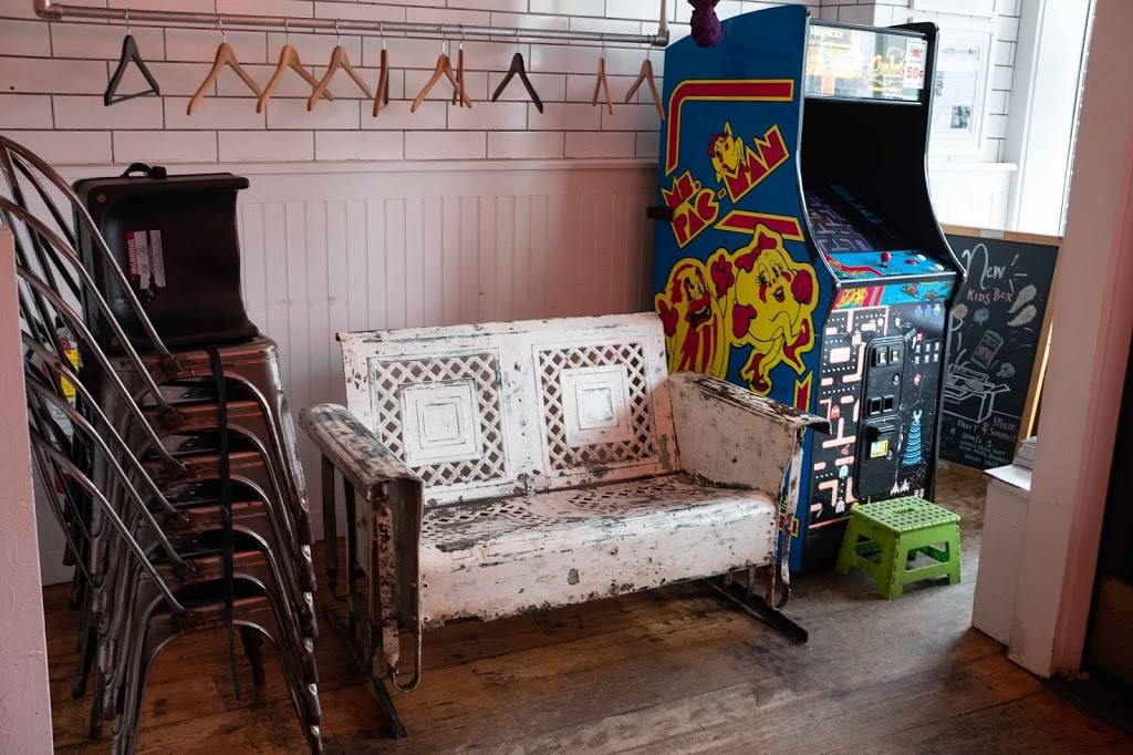 The place is very nicely decorated in a white tiles, post industrial fans and lamp and a few vintage accessories.