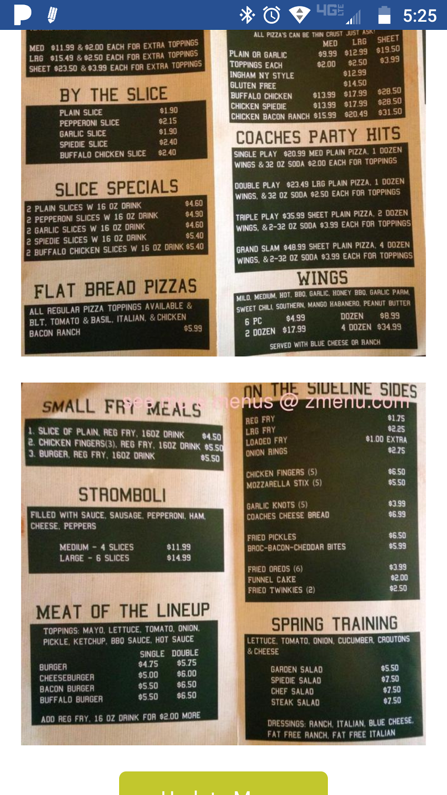 I am in town once or twice a year and make a point to eat at coaches, I really enjoy their speedies chicken pizza and have never been disappointed in the quality or service