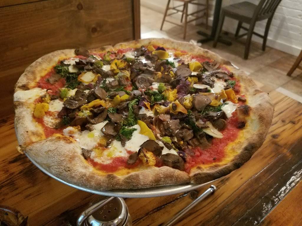 The veggie pizza nothing like I've ever had before...tasty for sure. There is limited parking available, but plenty of room inside. There is outside seating available in warmer weather. The ambiance makes you want to return. Our waitress was very friendly. The service was good.