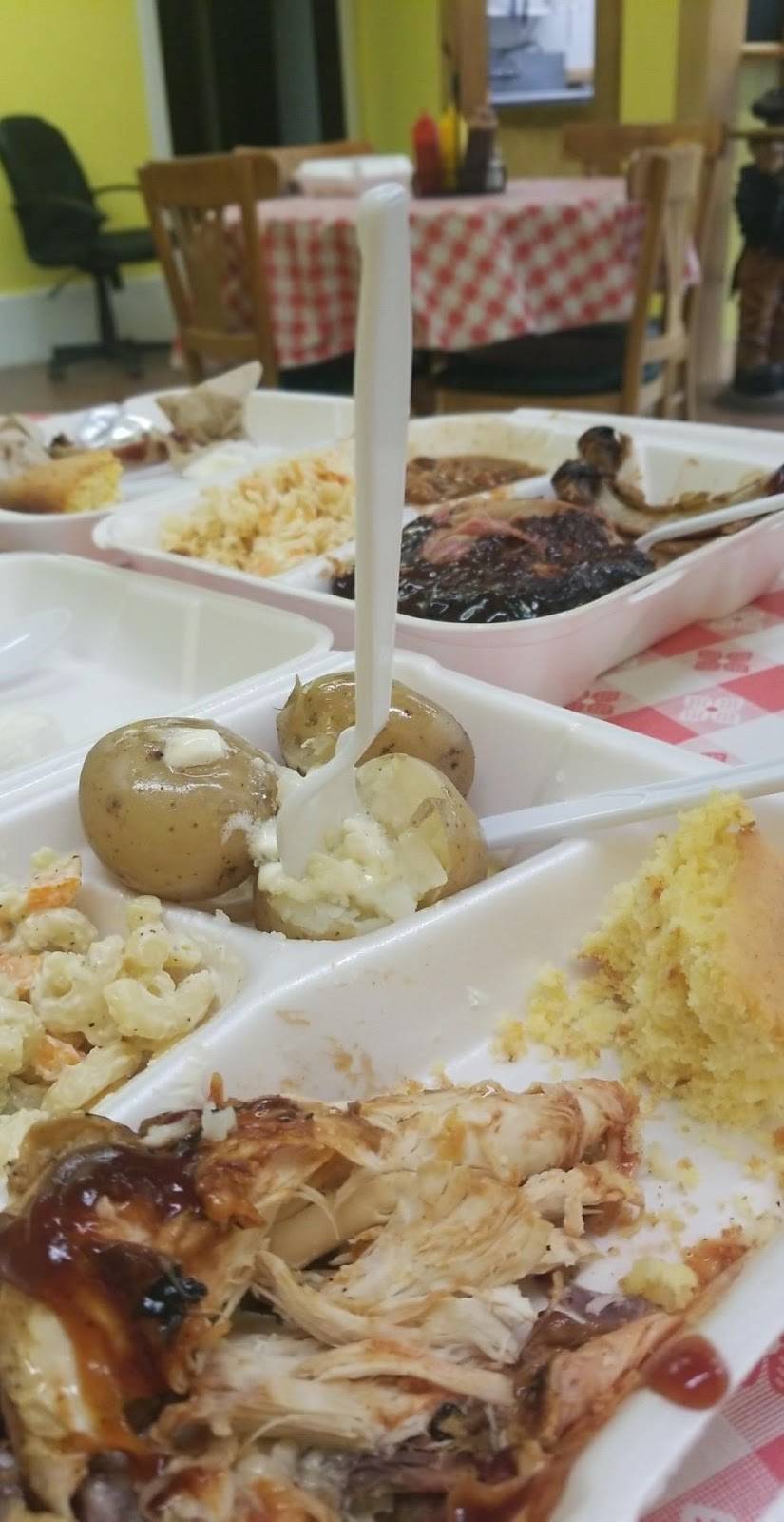 Incredible food! Best barbecue I have ever had. Great portions for so little money. We came in right before they closed and we're greeted with open arms and now full bellies. Definitely recommend getting a slice of cornbread... Mmmmmmm sooo good!
