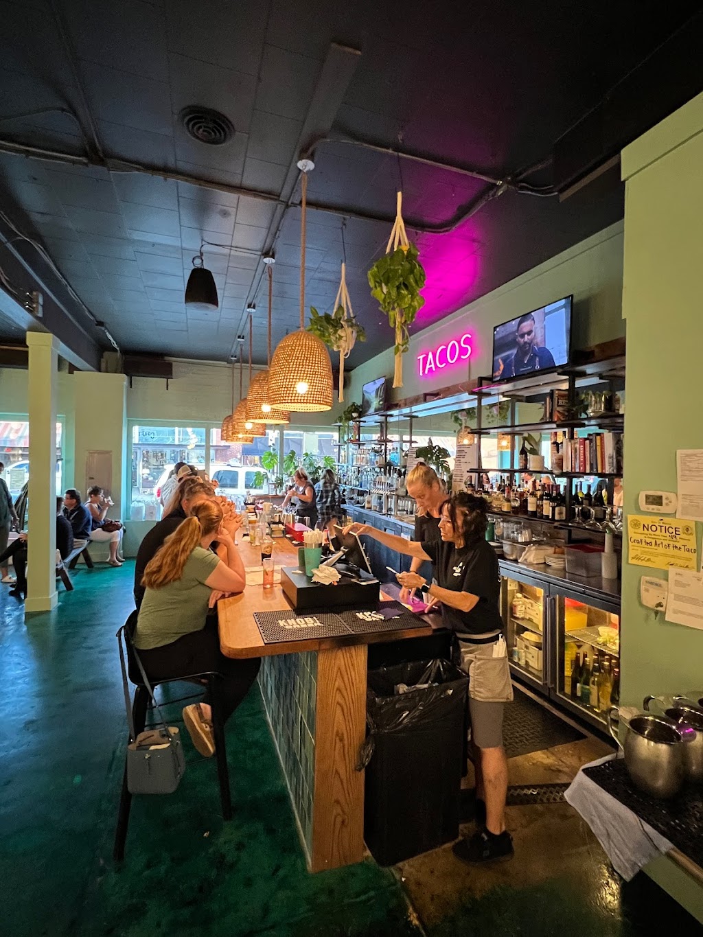 I went here with my mother and GF to have a bite to eat and a couple drinks. Tacos were outstanding and hot (temperature) and the drinks were ice cold. The atmosphere was great with the Spanish designs and the awesome neon pink taco sign. Our waitress Leslie and the owner Pat, were very nice and professional with their services. **HIGHLY RECOMMEND**