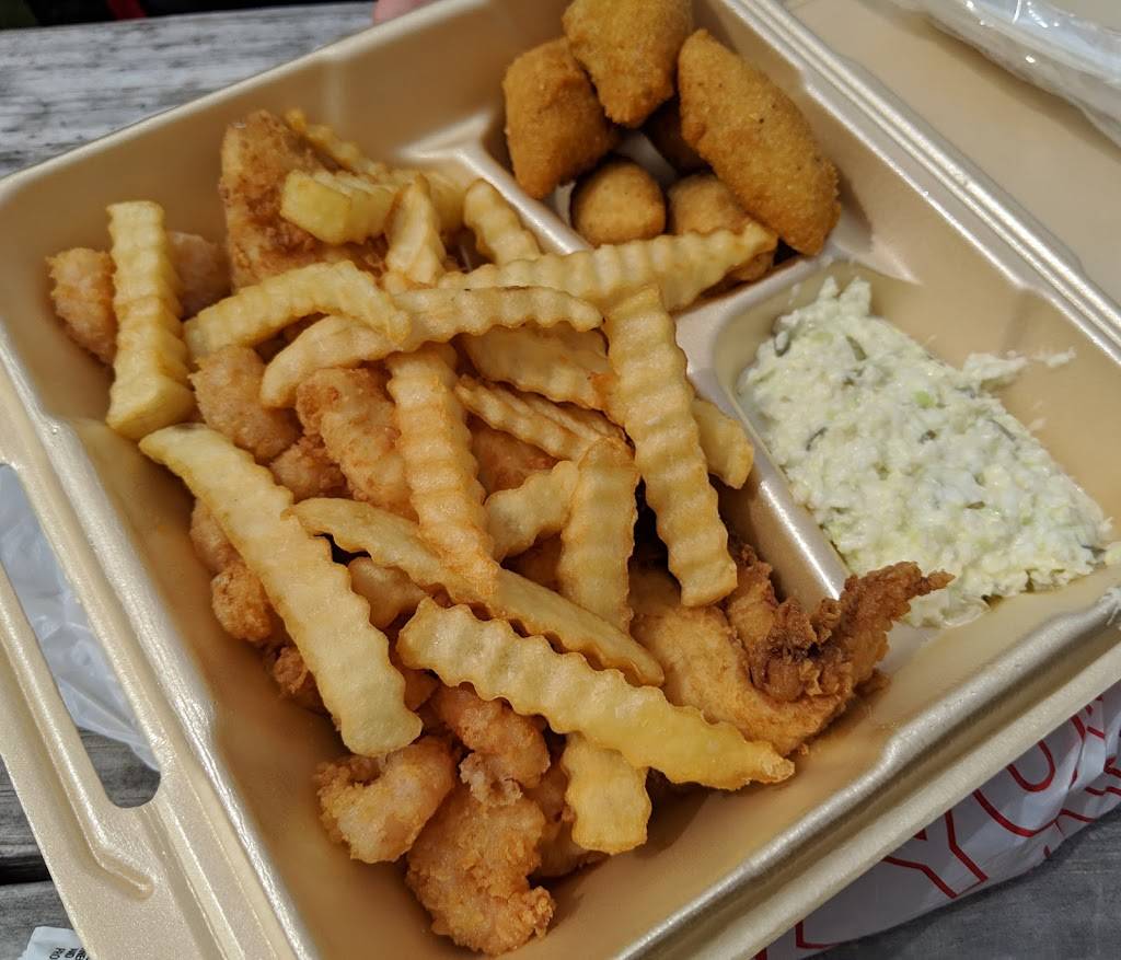 I get the cold boiled shrimp. Its tasty. They have great slaw! I always get it to go and they are generally pretty quick. I do not go during peak hours because this place is pretty popular.
