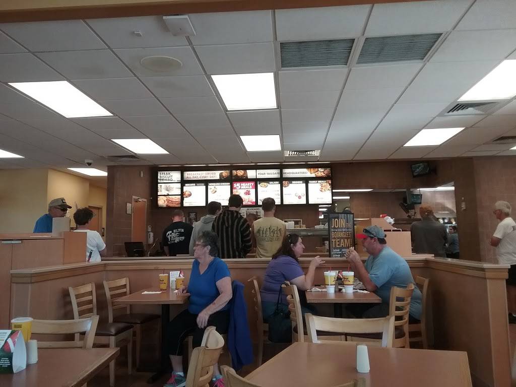 The staff is friendly about half the time and the dumpster is right next to the drive thru window, so as you're sitting there waiting for your food a nice trash smells wafts over to get you good and hungry. Also, the wait here is a lot longer than it should be. it seems like half the time there will be no one in the Drive-Thru Lane and they'll keep me waiting to order for 2 or 3 minutes. I give them two and a half Stars if I could, which is saying something considering I've never given another Bojangles anything less than a four. The food is as good as any other Bojangles (good).