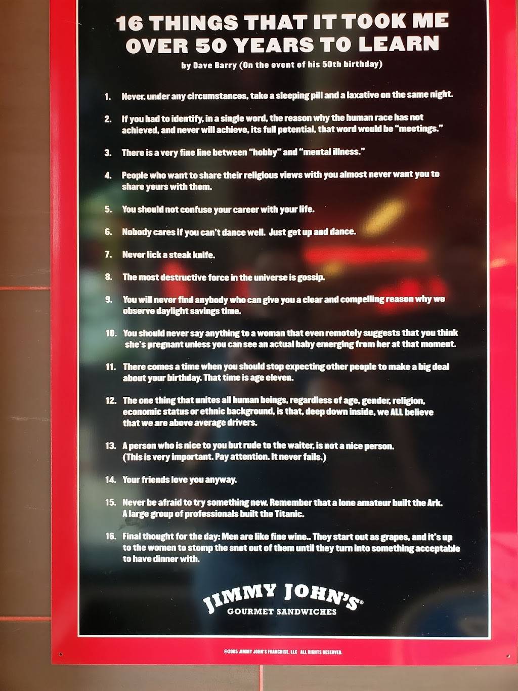 I order from this location all the time. Changed up my preference of sandwich tonight. Not only was it delivered in record time, as always. But the #9 Italian is amazing. Hope all the other JJ's are of this Caliber. My wife is in the food and beverage industry as a kitchen manager and she raves about the quality and service we get there. Great place to order in....