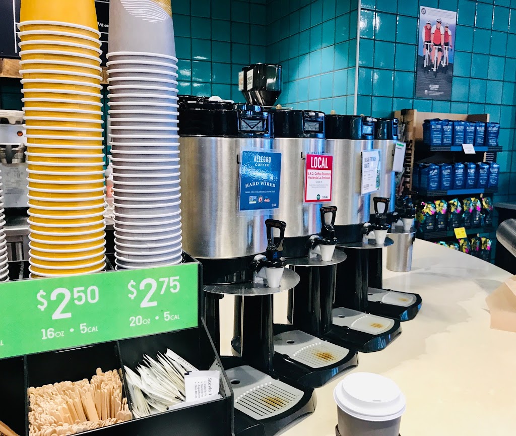 Good coffee and friendly people. It's located inside Whole Foods, which is initially confusing, but dont be shy. There is plenty of outdoor seating as well.