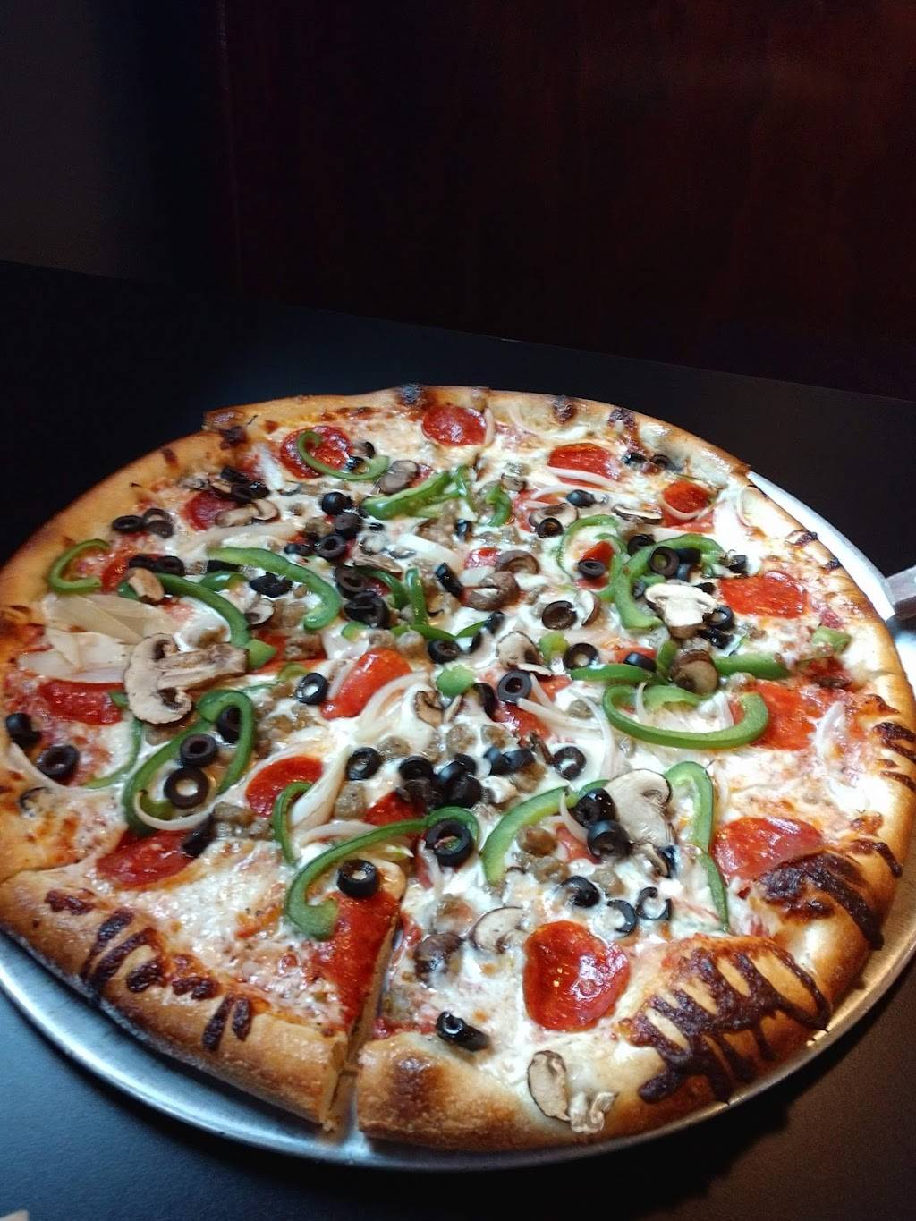 Great atmosphere, great pizza loaded with toppings. Salads were very fresh and delicious dressing. Very friendly and attentive service too. I will be going back often. They have a bar too. Highly recommended!