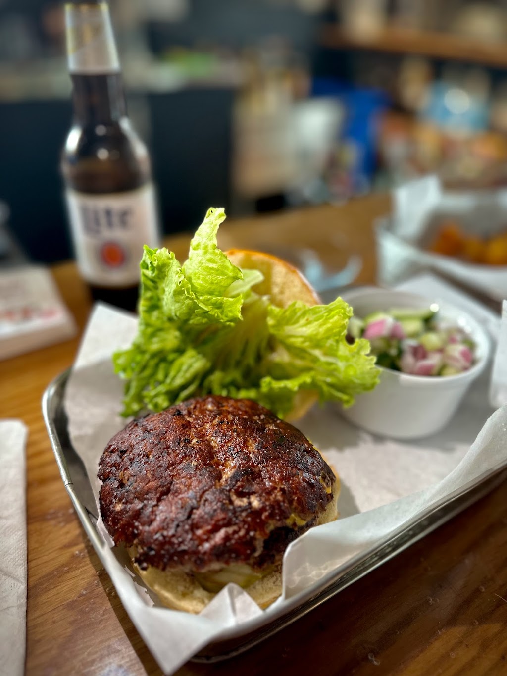 Excellent place to eat and have a drink! The bartender (Haylee) makes excellent cocktails. Bar is stocked with great/ hard to find bourbons and a great craft beer selection. The burgers are made from Highlands Family Farm raised beef and are cooked perfectly. I highly recommend you check this place out.