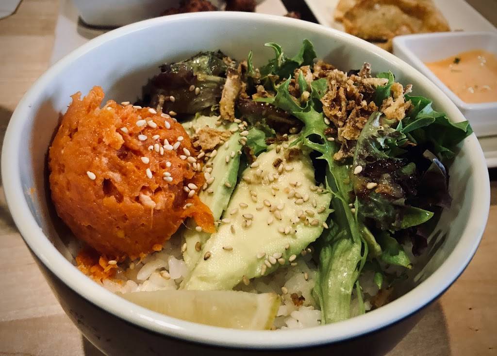 Tried the tofu bowl and edamame today with iced green tea while my spouse tried the ground chicken bowl and a soda.