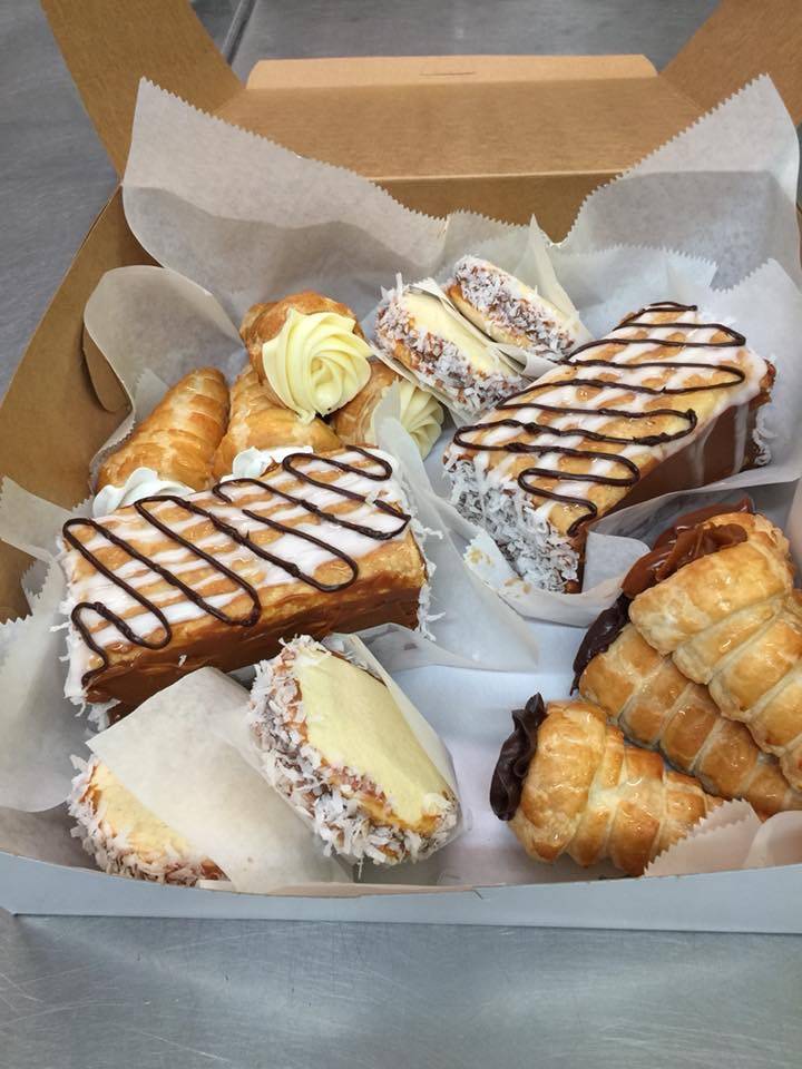 Fresh baked apple turnovers, croissants, flan, and much more. There is sandwiches, pasta, soft drinks, & coffee. So delicious! Treat yourself to fine, tasty pastries. Reasonably priced, owner and staff are very friendly!