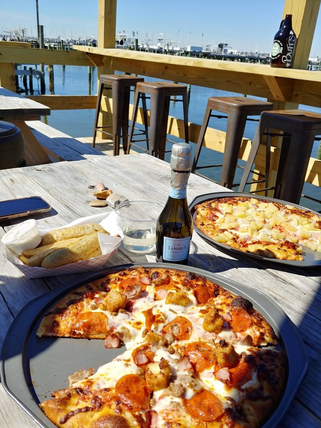 Wonderful service from Lily! She really knows her beers and was super informative! The wings were yummy. We got the hamburger pizza, I personally think a mayo base would be best on that ???????? great view and outdoor seating!