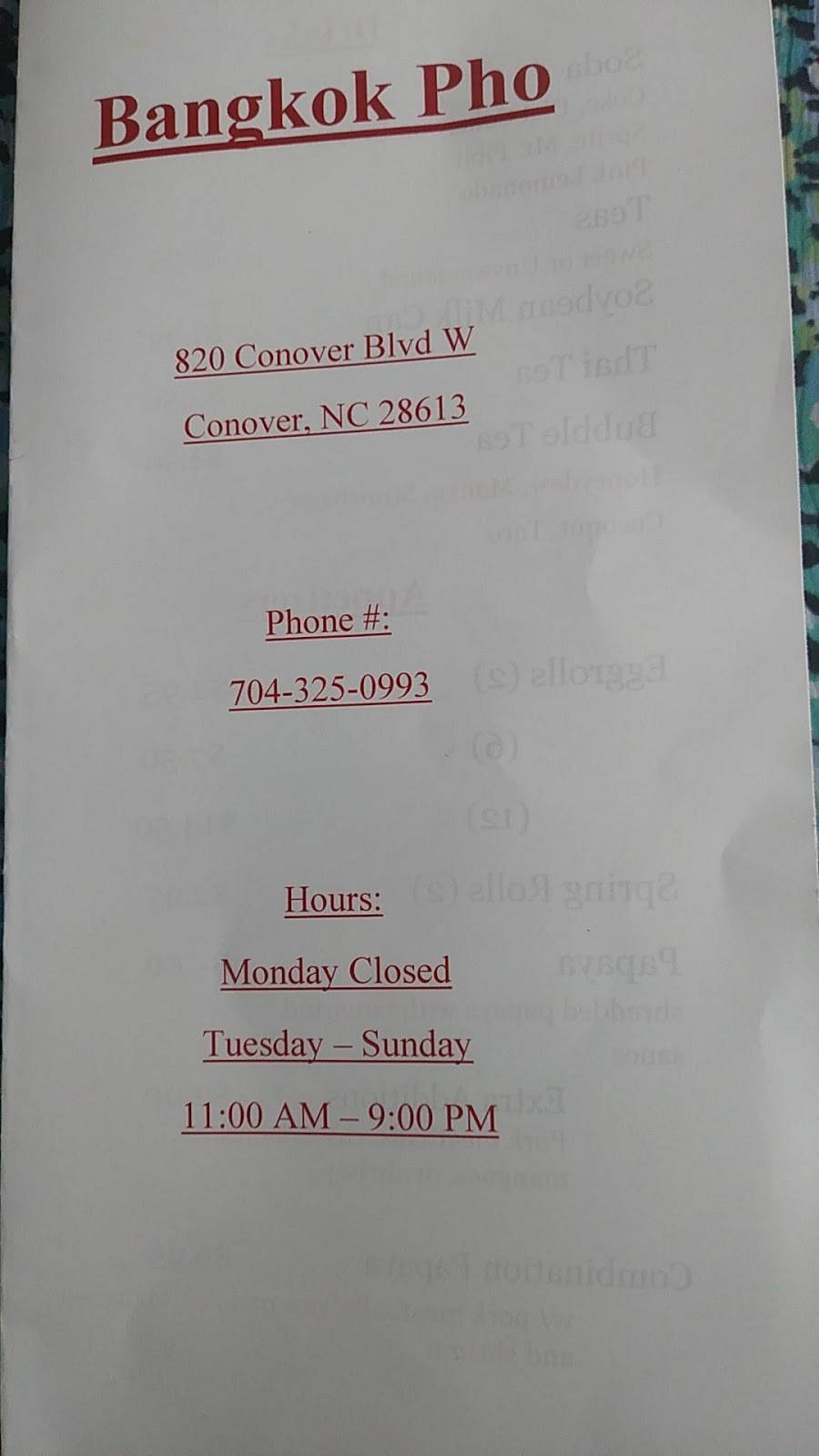 You can review this Business and help others by leaving a comment. If you want to share your thoughts about Bangkok Pho Asian Cuisine, use the form below and your opinion, advice or comment will appear in this space.