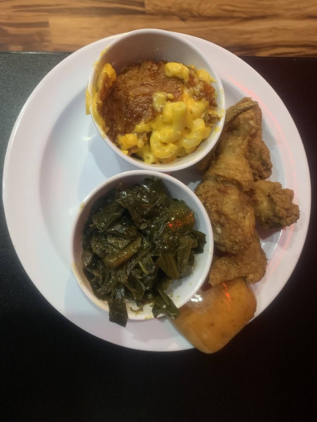 Food: I had “The Skinny” which was tender and full of flavor. The Mac and Cheese was WONDERFUL! I highly recommend it. The collards were not my favorite at all. They were bitter and somewhat greasy tasting. My mother had “Moore Fried Chicken”. It was perfectly crispy on the outside and juicy on the inside. It was seasoned perfectly! She had the same sides as I did and agreed with me that the Mac and cheese was the best!