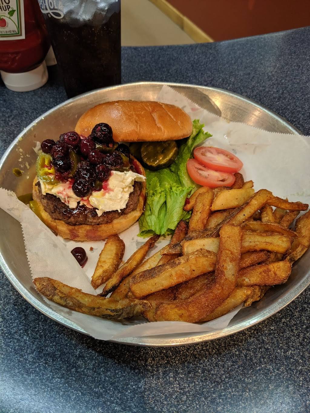 Great Food - place was packed and yet the wait staff were engaging and fun. Food was terrific. Even though it is a burger place - try one of the custom hot dogs. Absolutely fantastic. Highly recommended.