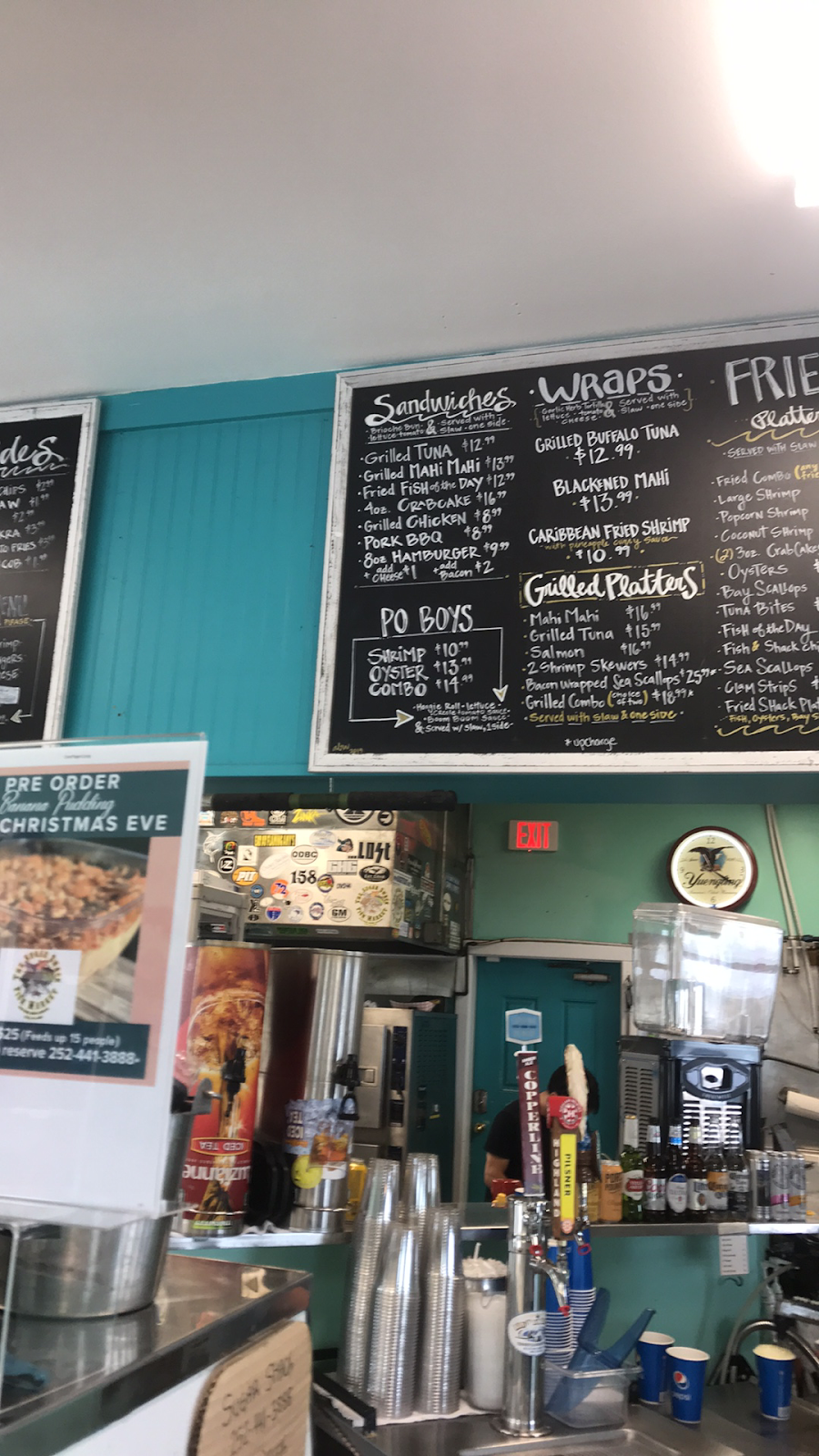 Delicious local oysters - very fresh- from the Pamlico Sound! And amazing banana pudding. Very helpful, friendly, and professional staff. And reasonably priced oysters that I steamed when I got home. They'll provide cooking tips if you're unfamiliar with fixing fresh seafood.