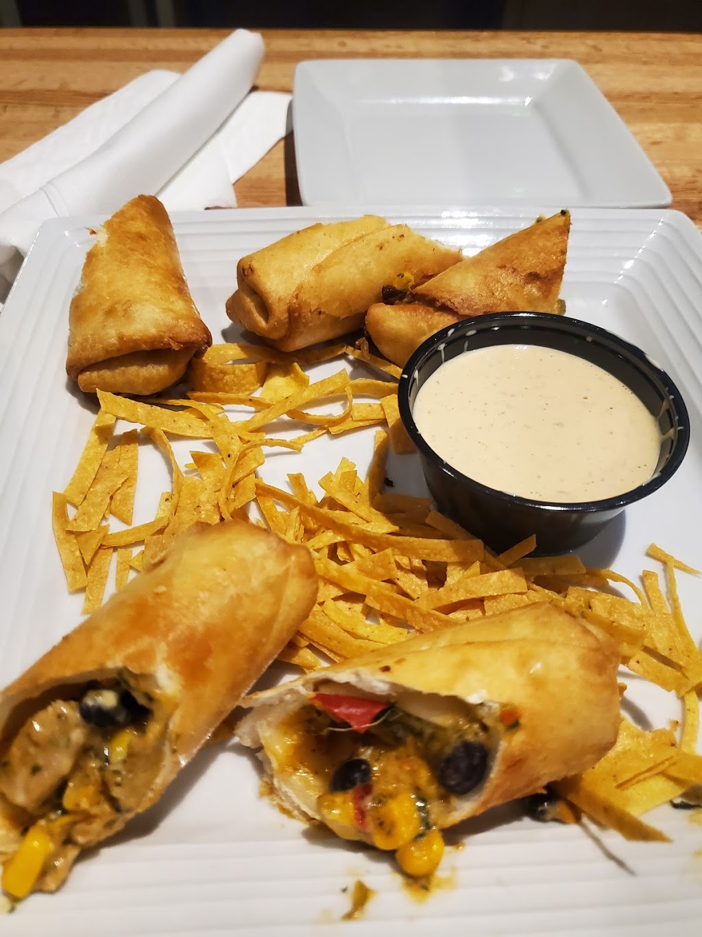 The chicken Alfredo was very greasy and it wasn't an Alfredo sauce. It had very little taste. The chicken was good. Our server was very nice but kept forgetting things. It appeared there was no separation of people. People are getting salads from a salad bar. I have been there before and had a very good Mediterranean wrap.