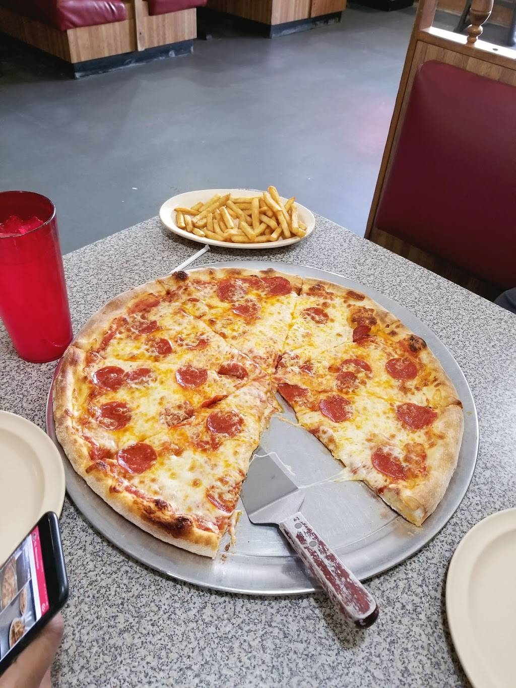 Great, cheap pizza, and other Italian food. Friendly staff, and table service after you order. A great place. To bring big groups for a casual hangout or meal.