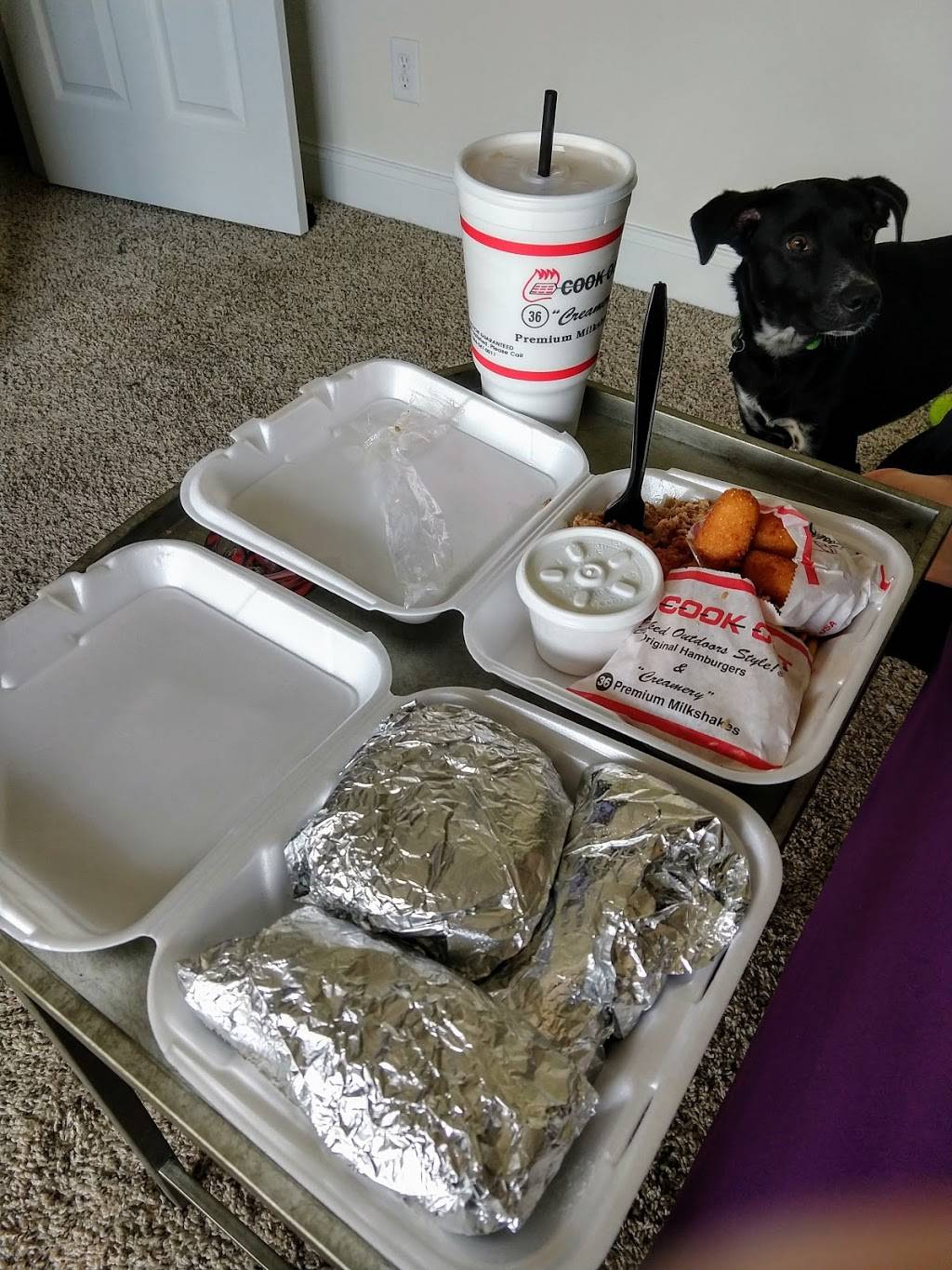 I liked this restaurant. We don't have Cook Outs where we live so we've been curious and finally stopped tonight. The menu was larger than expected - more than burgers - and the service was fast and friendly despite the long line when we pulled up. There are also about 40 different shake flavors to choose from, some very unique, that I want to try on our next visit. Note - do not assume that they will put everything on your burger. Ask for the toppings you want.