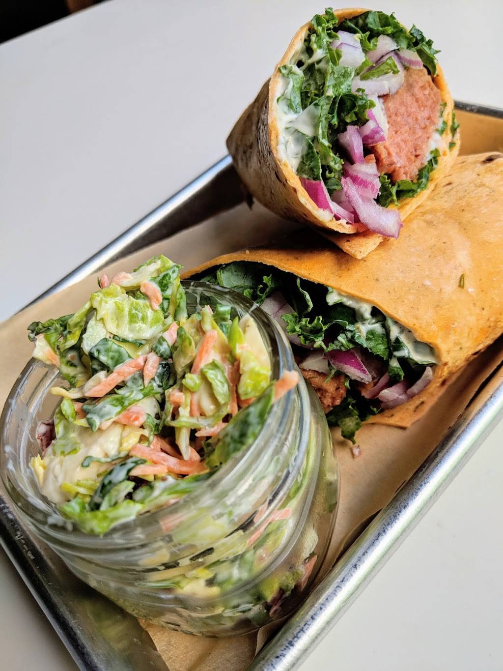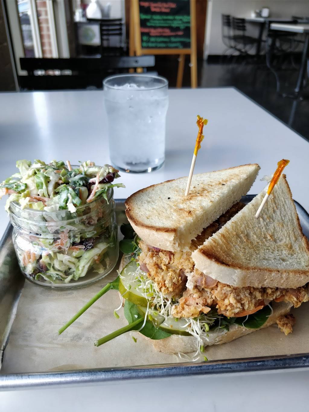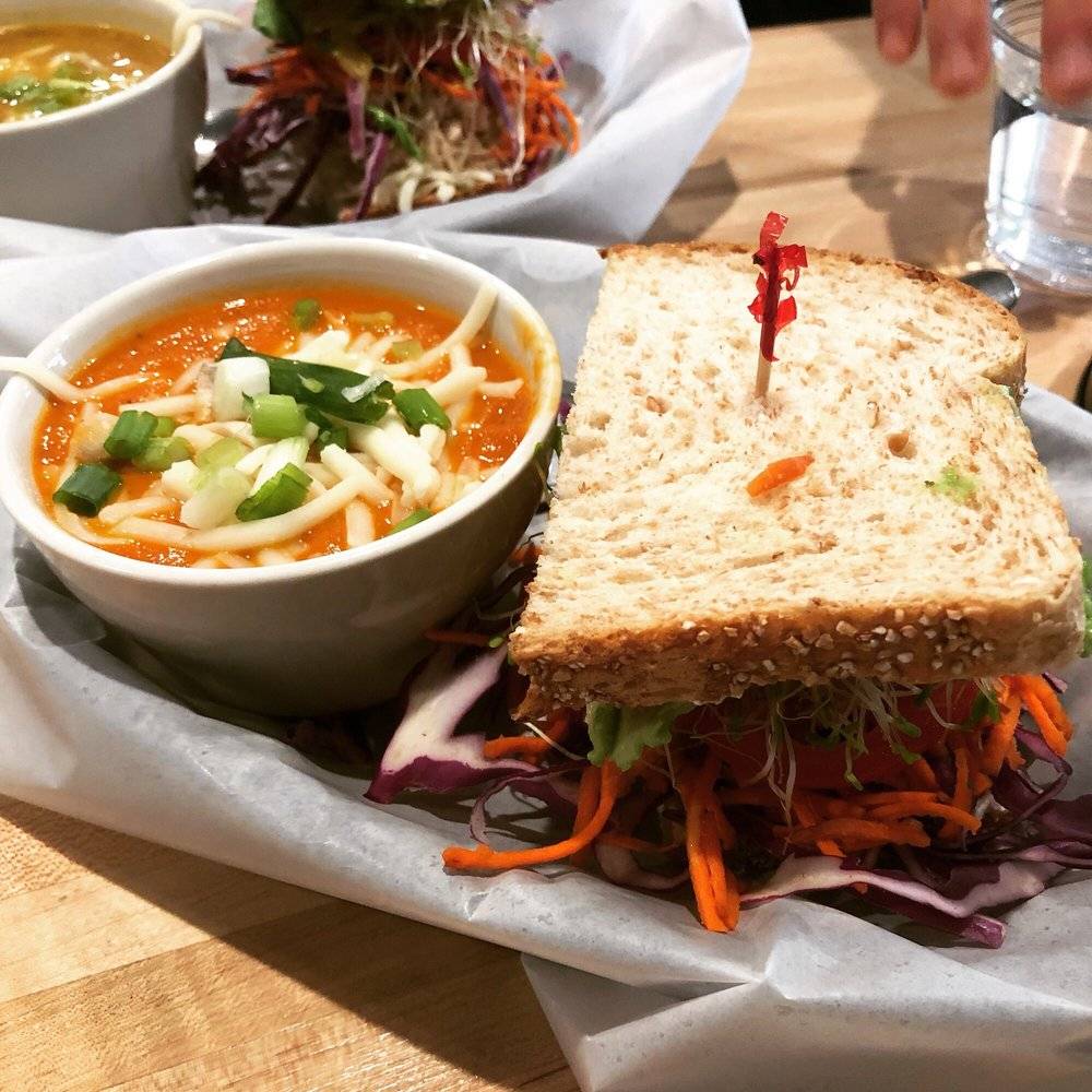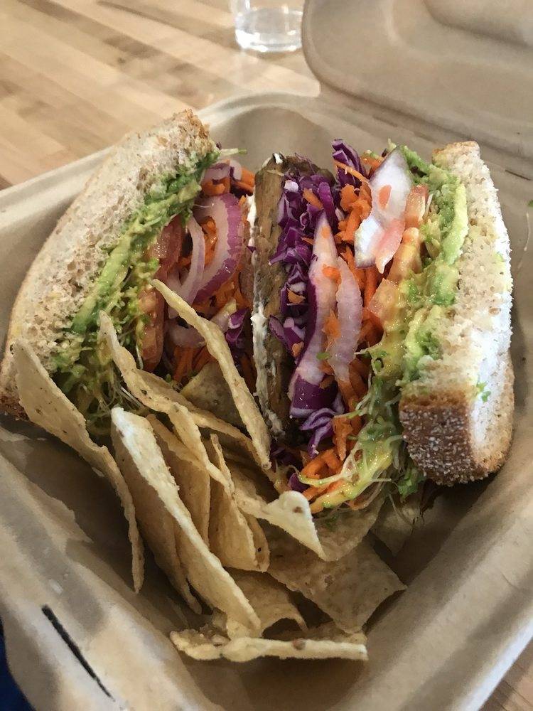 Yummy vegan options that really fill you up with quality ingredients. The staff are so chill and accommodating. I got the vegan mock chicken salad made from tofu put together rather nicely on a sandwich. Brussel sprout coleslaw on the side. They also serve the beyond meat burger.. a must try for any meat lover. Just found out they deliver through grub hub now. I like to stop at the organic market upstairs for snacks before I head out.