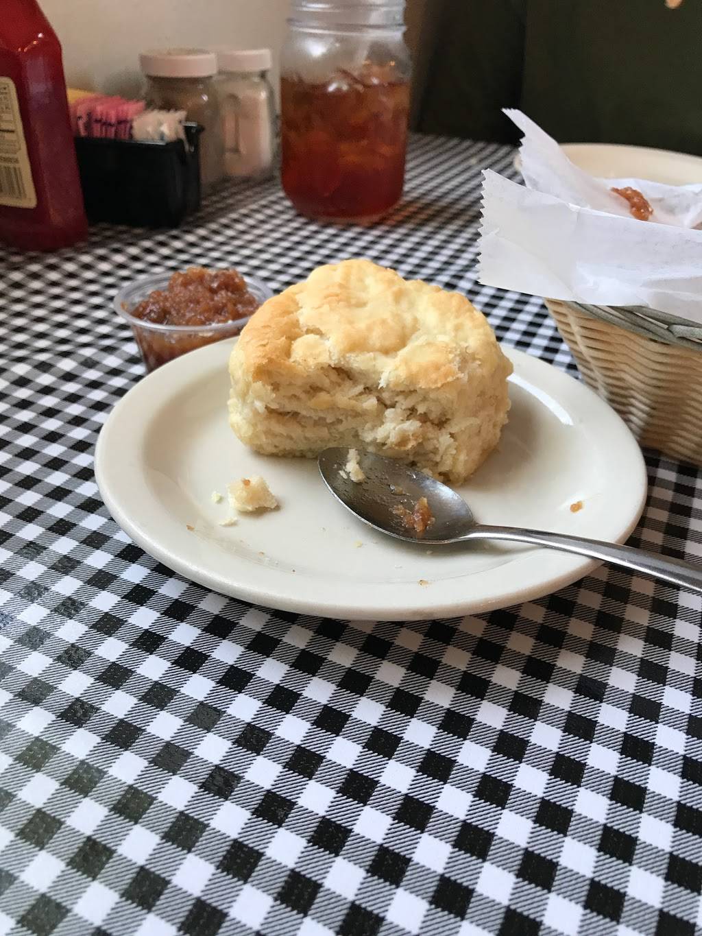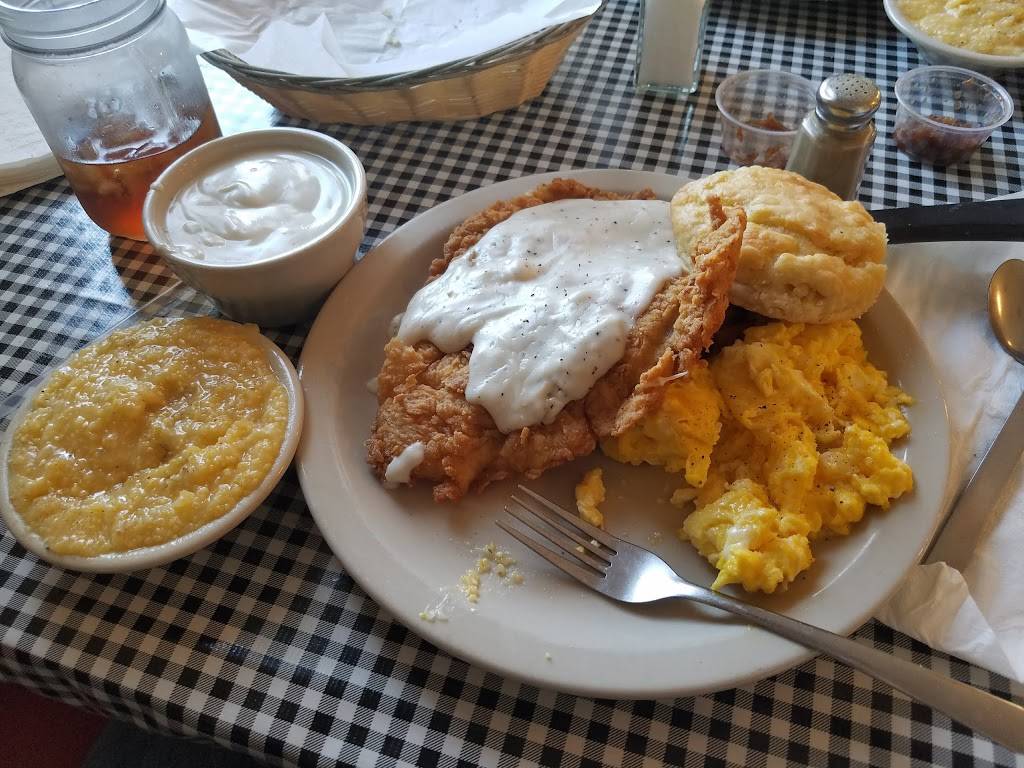 Very friendly service, cute farmhouse feel. Huge portions of food and fair prices. Southern soul food with charm. It was busy at lunch time, but my food and service was quick. Huge biscuits to start served with fresh apple butter. Cute little shop and items to purchase as well.