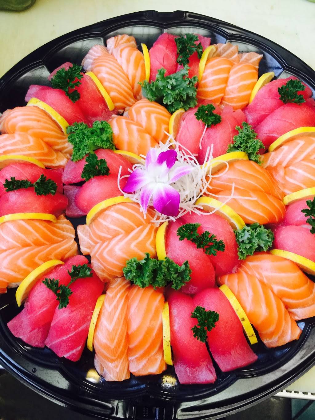 The food here is amazing. They have a very large selection of sushi as well as hibachi and other entrees. The service is fast and friendly. It is well decorated and we love the atmosphere.