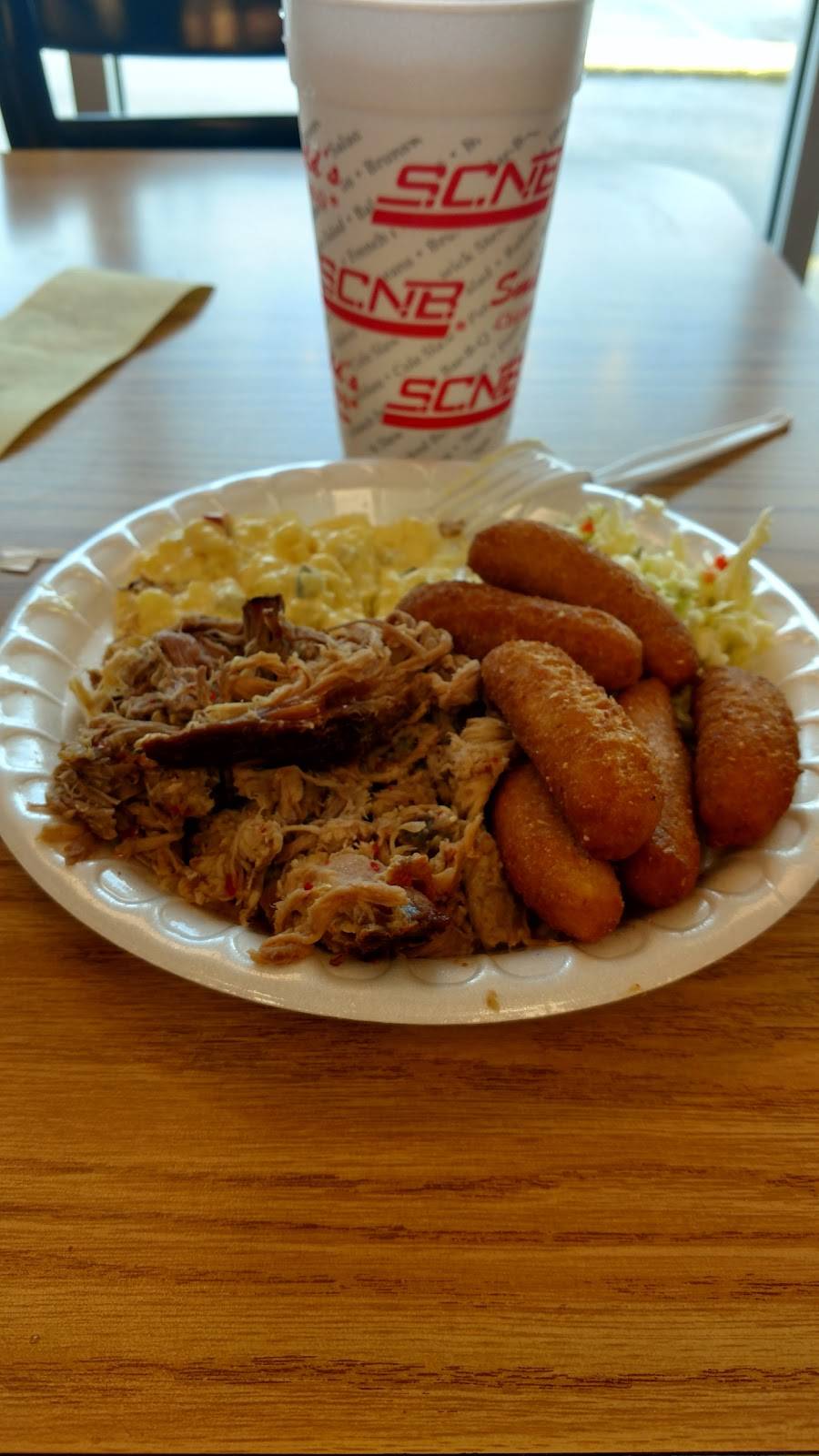 The place looks great. The service was great. The only thing wrong was their slaw. They have started putting pickles in it. I like pickles but not in slaw. If not for that they would have got 5 stars.