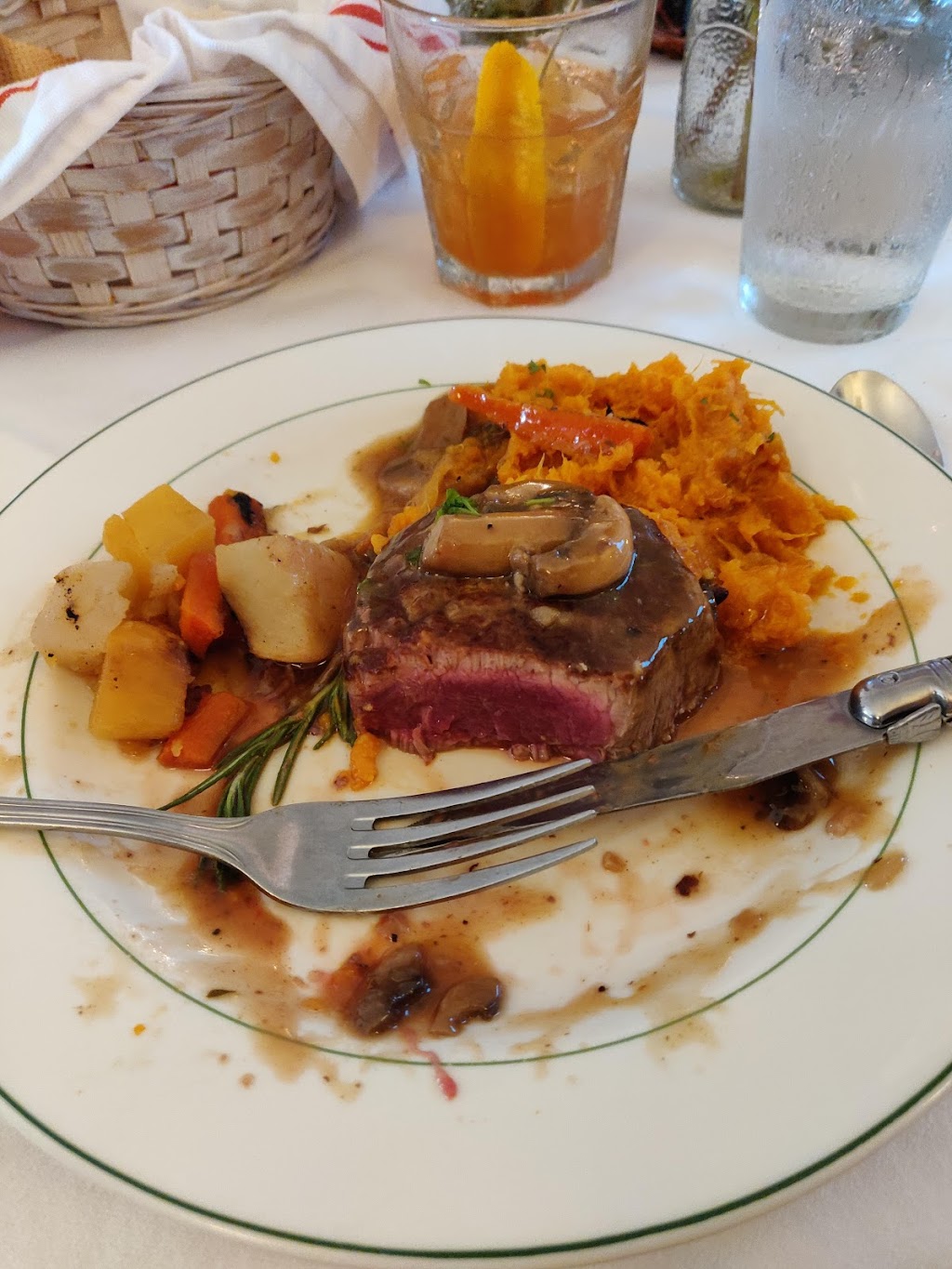 Every year, during vacation, we make a point of the whole family eating here. Superb food and service. My favorite is the Filet Merchandise de Vin dinner and Seared Sea Scallops appetizer. Excellent!