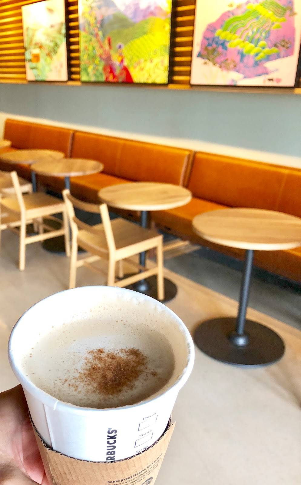 Spacious seating and customarily good drinks, pleasant & friendly staff greeted us promptly and completed our order with all appropriate haste. It was a great find on our cross-country trek.