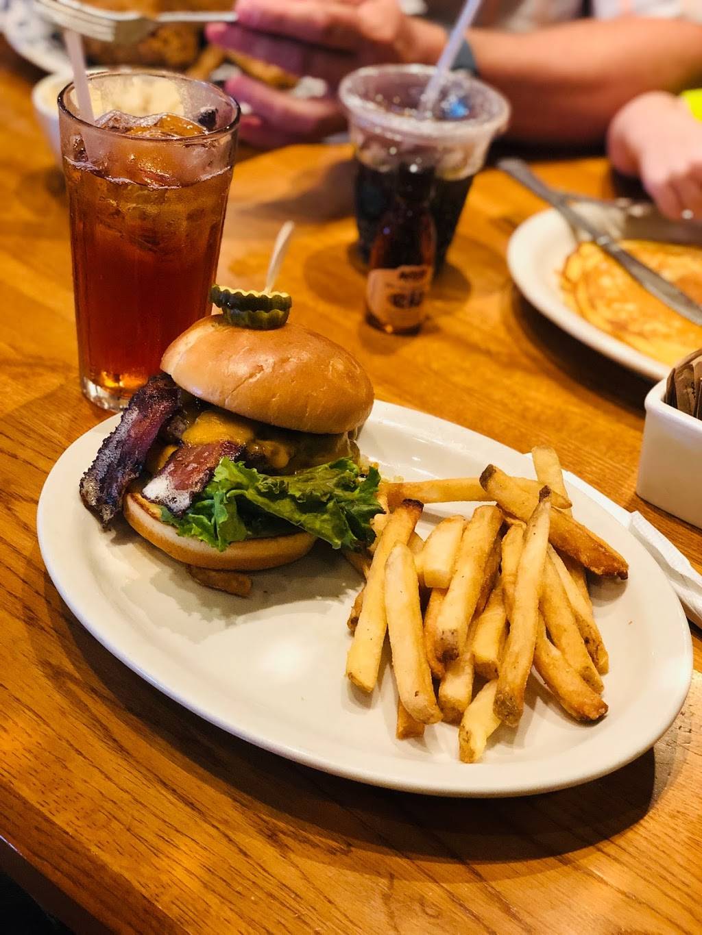 - went here when it was pretty busy, service was good. We actually had a waiter and waitress both checking on us literally every time they passed. Love the new summer menu. I had the Jam N Bacon Burger it was delicious.