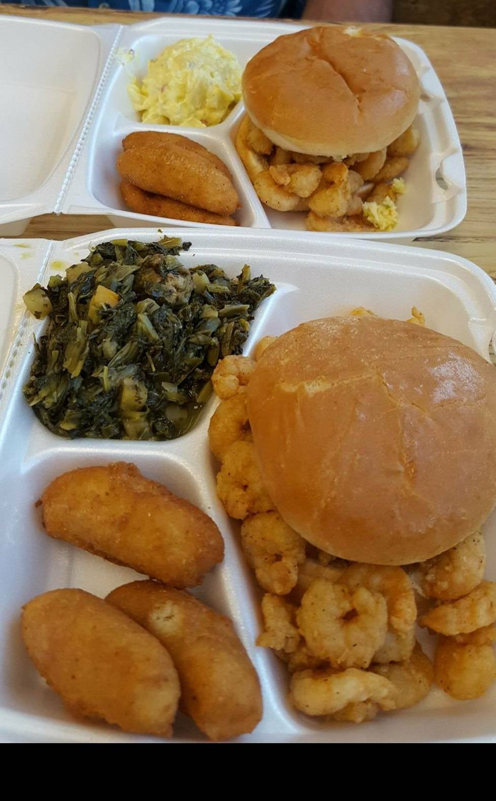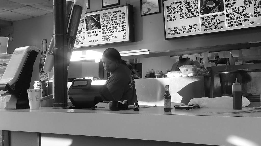 Excellent North Carolina BBQ. The chicken is well seasoned and the coleslaw paired perfectly with the sandwich. The hush puppies and fries were also good. I suggest checking this out if you are in the area. Very good eat!
