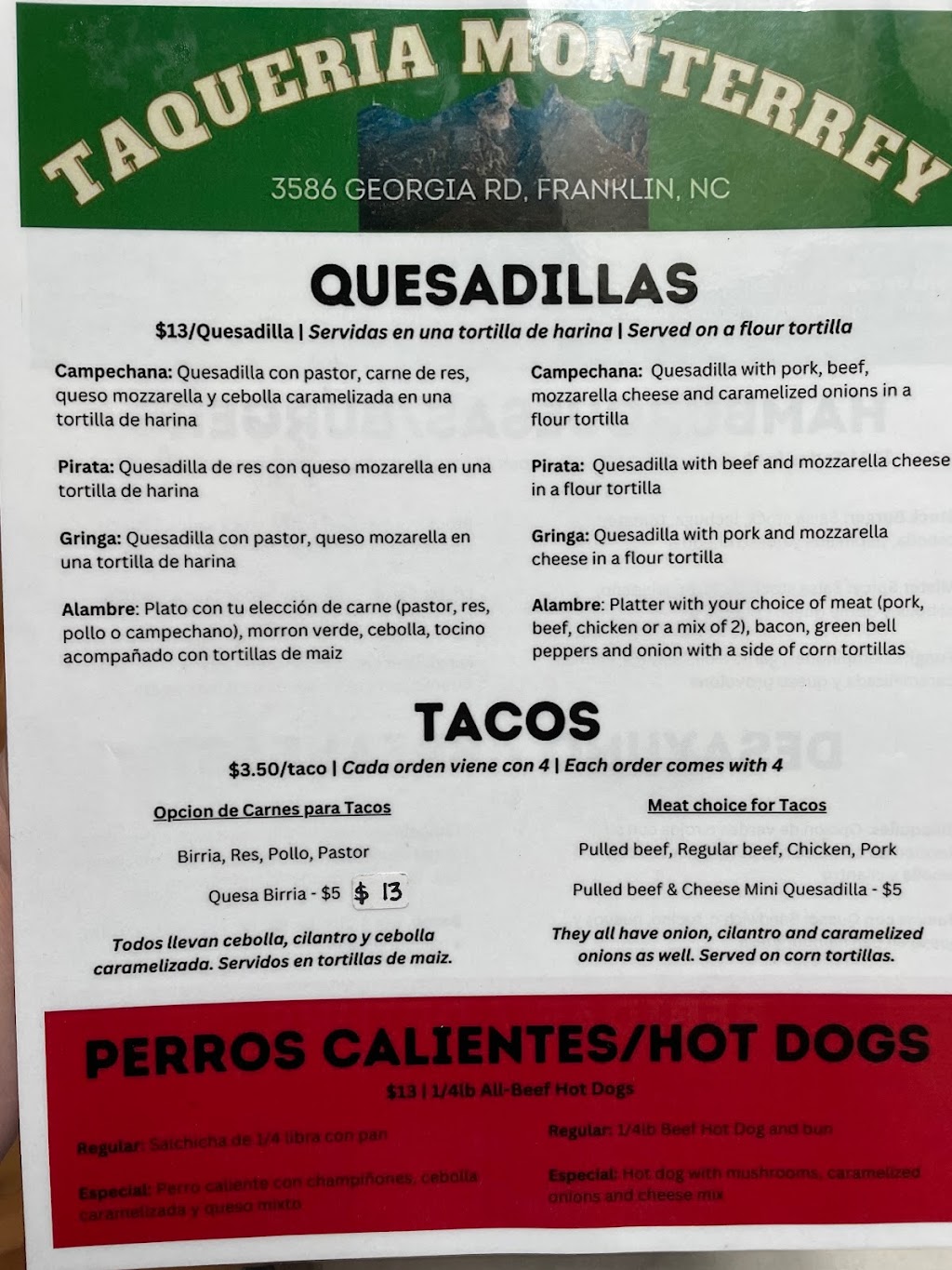 If your hungry, you wont be when you leave!! I got a chicken sandwhich, it was cooked, melted cheese, and HUGE! Literally the sz of 2!! My mom ordered a tortilla w meat n cheese (sorry I don't eat much Mexican), whatever it was it was super huge as well. They do have a lot of onions on the items we ordered, which was fine with me. I really want to post pics but don't see a place to do so :(