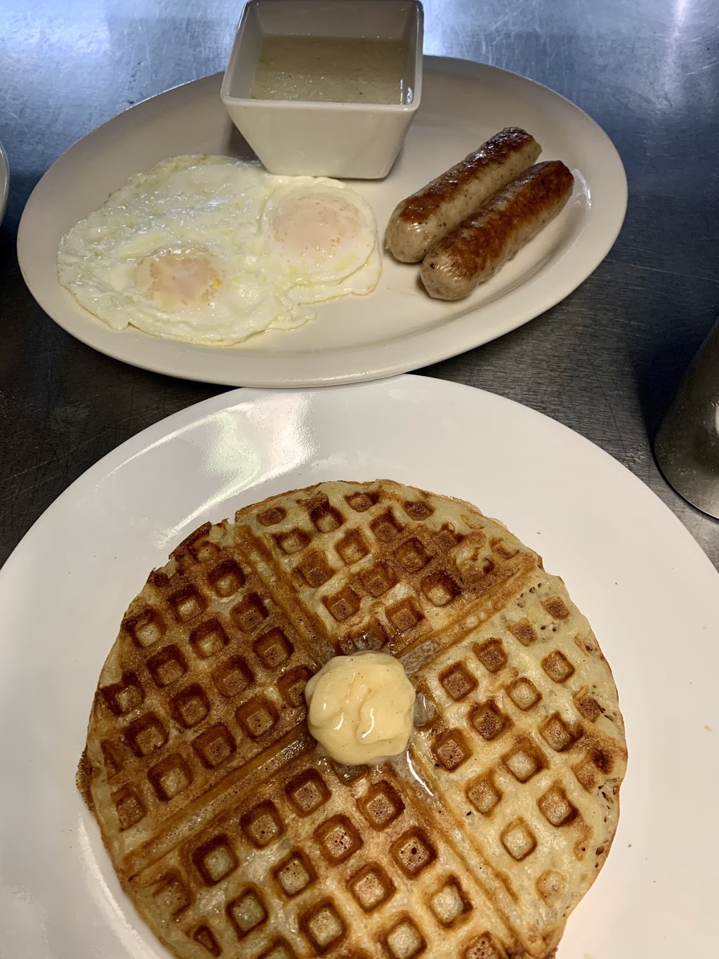 We had breakfast tacos and eggs over medium with sausage and bacon. Both we excellent.