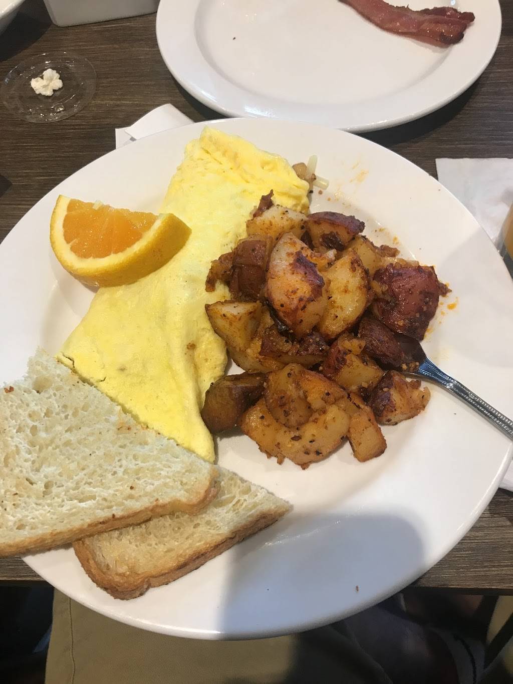 The food was good, overall. The Bacon is amazing by itself but the potatoes tasted rubbery.