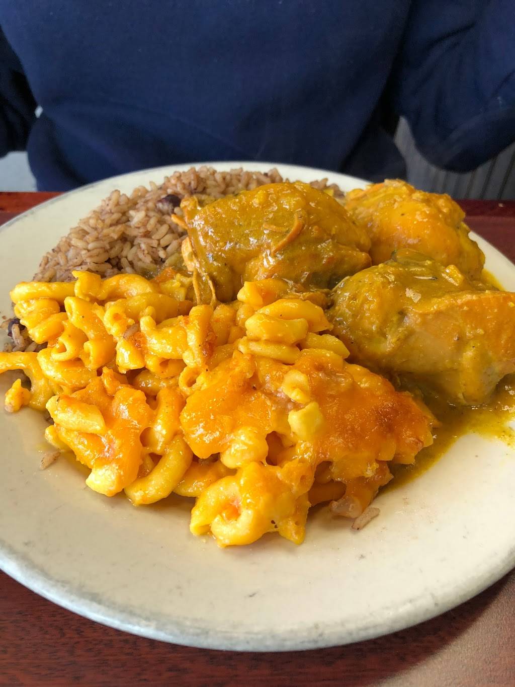 The customer service was good, the young lady was nice but I wasn't happy with the food. It was warm, came out quick tho. The meat portion was small for $17 small. The ox tails was tender but it was one the curry chicken was decent. So I feel i didnt get my money's worth. Or I'm not a rice type of gal so i don't want half a plate of rice. The plantains were pretty good.