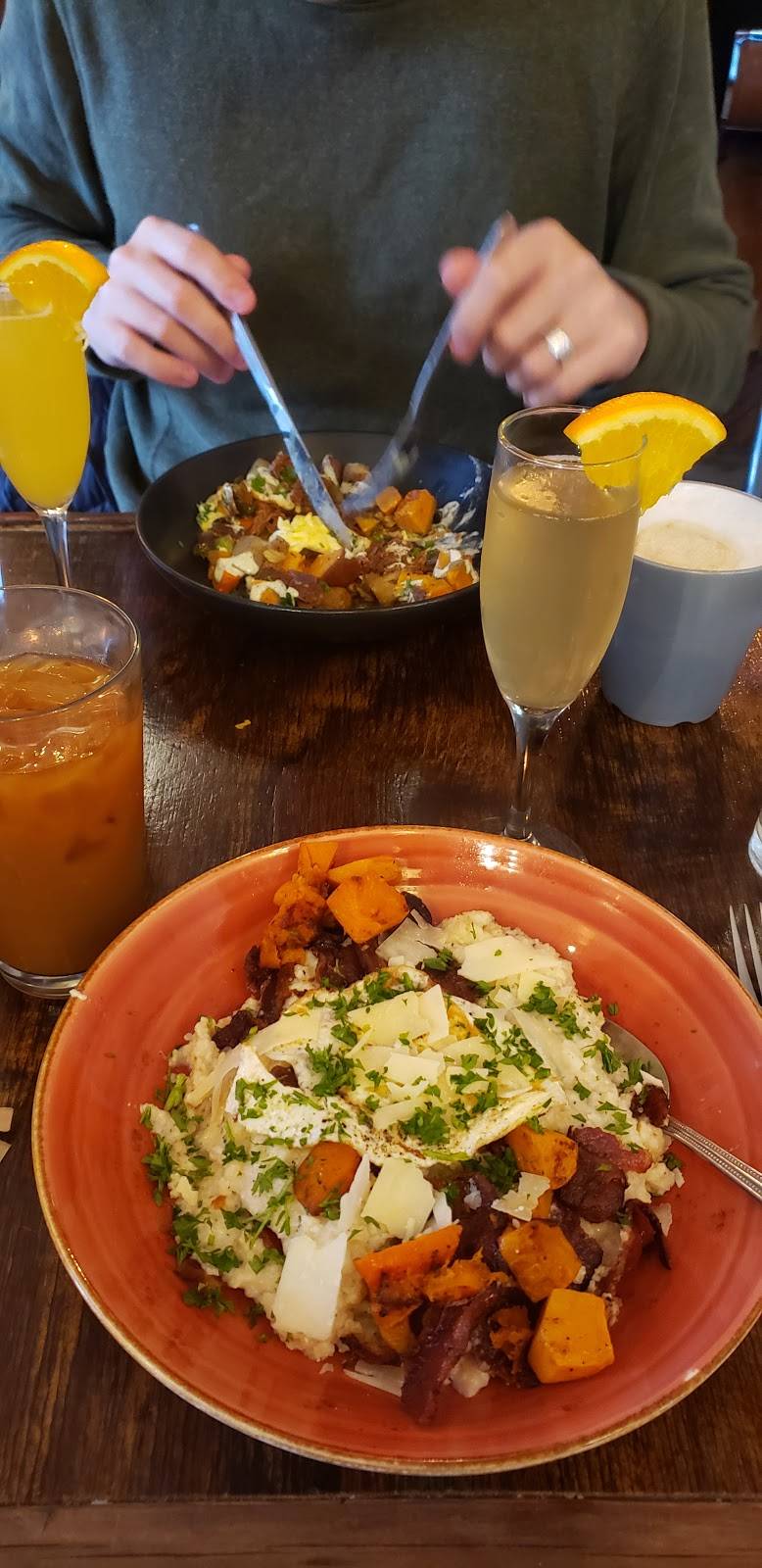 Hidden gem! Quaint locally owned breakfast & lunch spot just behind the building facing South Blvd. Free parking, but spaces probably go quick. Coffee tasty. Food was fantastic! Their breakfast menu has creative options, including hash. Eggs done right, bacon not greasy. A tad pricey, but absolutely delicious. Will be back to try lunch.