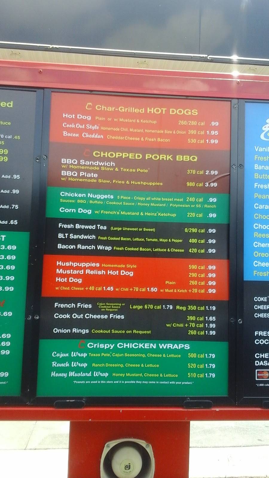 Typical cookout setup. Huge crowds hanging around. Drivethrough was super slow. Always pick the inner lane. The outer lane barely moved as we. The voice box quality was abysmal but the managed to get our order. For what you pay...can't really complain too much.