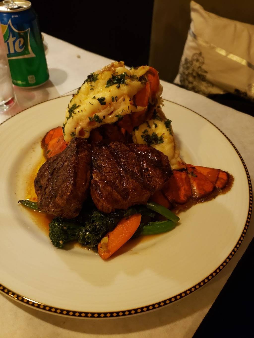 The interior could use a facelift, but I went for the food and was not disappointed! The lamb chops were superb, seared to a light crisp and tender and juicy inside. My wife's surf and turf was excellent too. The waiter disappeared for long periods of time, but the food was so good it didn't ruin the evening.