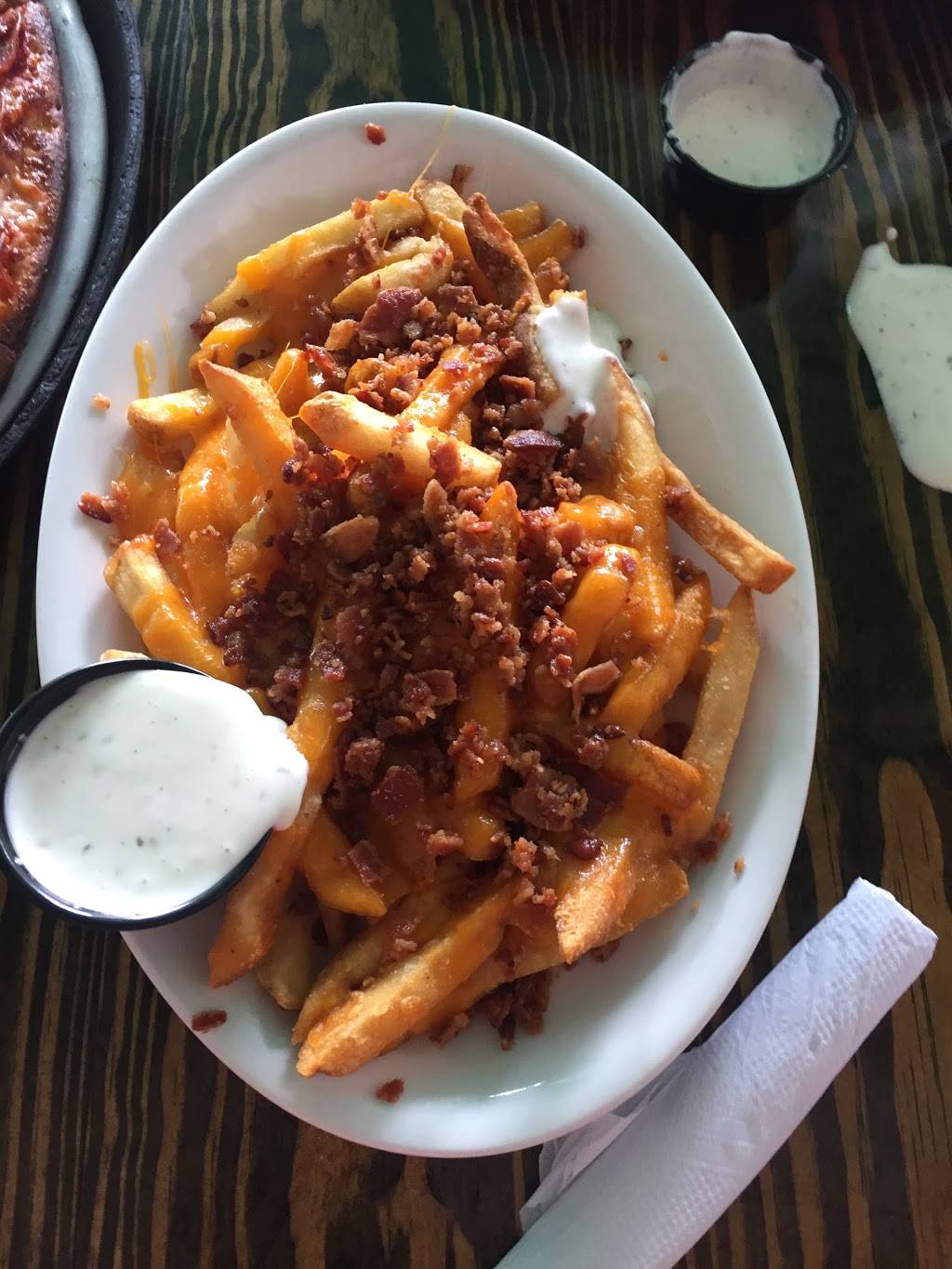 Love this place... outstanding management, hosts try their best to seat you right away and super quick to wipe tables down and get them cleaned off for you as soon as one opens up. The servers are amazing as well as bartenders. Can not beat the bacon cheese fries as an app, and get the wings tossed in hot honey and honey mustard mixed...( to die for)