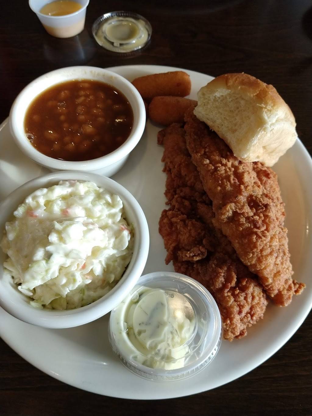 Great food. Quick service. Portions are large and great to take home a little extra. TV's with sports on all over the place. Mr Charles is there often and great to talk to. Chicken and seafood are their specialties.