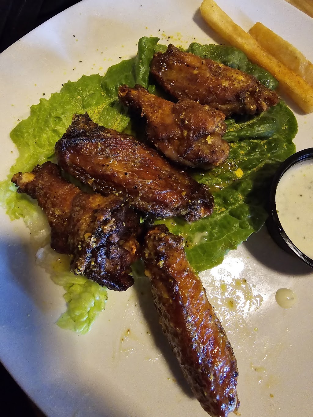 Got to check out Kream last Friday night while visiting Charlotte. Kream is nestled outside Carolina Mall, but the bright white sign of "Kream" will guide you in. I didn't see the host at first as I grabbed a menu, but she saw me and tried to get my attention. I must have missed it as she roughly took me over to a table and then to another one. Thankfully, the rough start to service quickly changed as my server Brie, yes, like the cheese, greeted me and took my order. I wasn't drinking that evening, so I stuck to water. I decided to order some lemon pepper wings and collard greens as I wasn't super hungry.