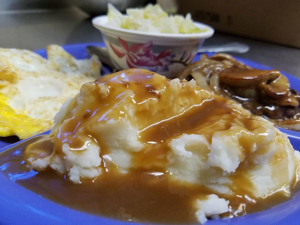 Hamburger cheese steak is really good. Cabbage and mash potatoes are good too.