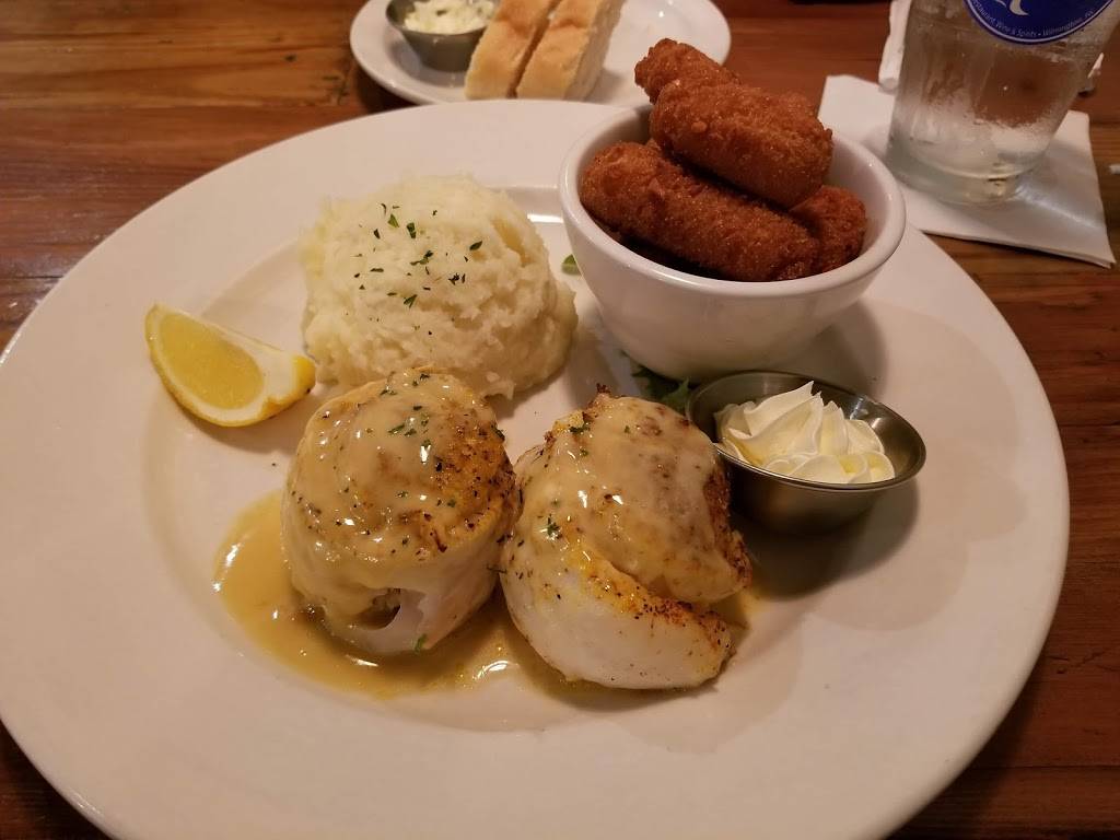 Not much atmosphere, very informal atmosphere but with higher scale food. I ate at bar, bartender delightful. I had the stuffed flounder. Extremely small portion, it looked like 2 scallops as the flounder was wrapped around maybe a teaspoon of crab stuffing. Slaw and mashed potatoes nothing special, but at least tasted good. Disappointed. Overpriced. Oh the bread was great and I liked the way it was cut.