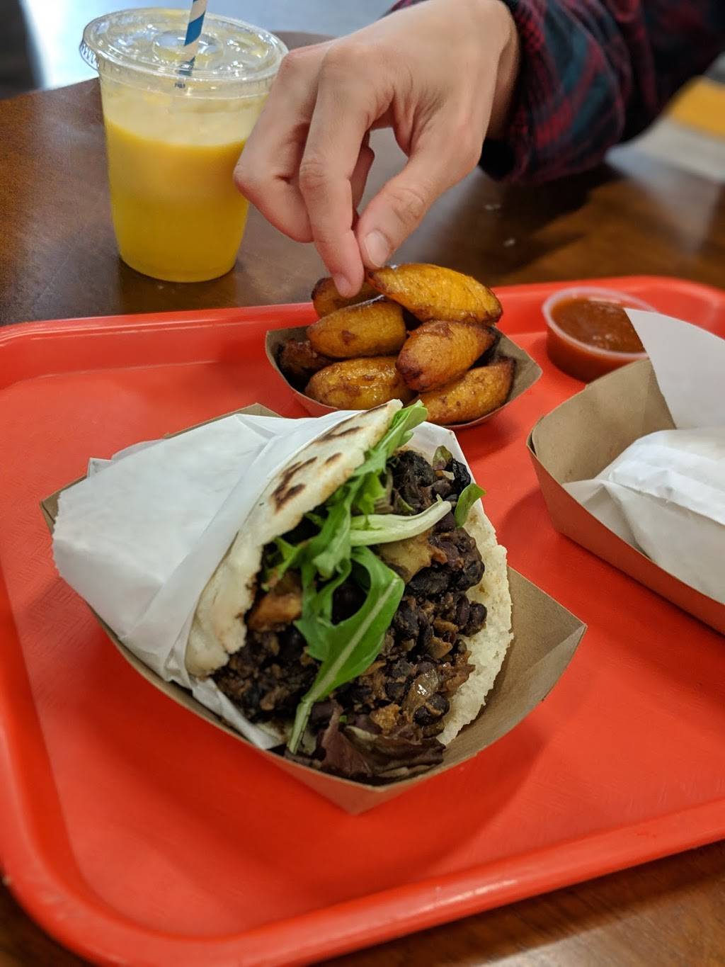 Amazing food. I has yuca puffs and the Arepas with black beans, zucchini and plantains. My hubby had seasoned Chickpea with Artichoke. Absolutely the best meal I have had in ages. I highly recommend.
