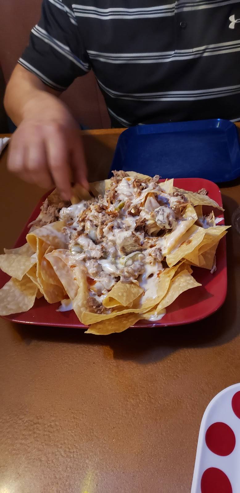 Friendly staff and delicious food! It's a little bar/finer with a fairly small menu but the food was great and the prices are very reasonable. The Pig nachos were amazing! The homemade BBQ sauce is sweet and tastes great. Highly recommend this place