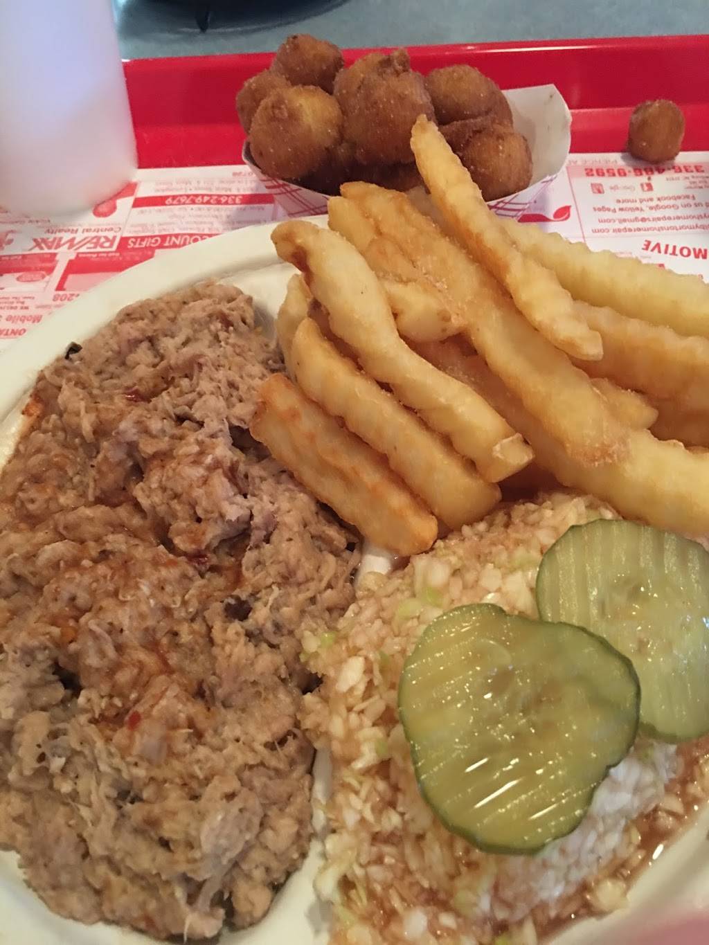 So the generous portions and excellent hush puppies saved the meal as well as the friendly staff and quick service. Oh and the unsweet tea was good. Just disappointed in the actual que's lack of smokehouse flavor. Total cost was 10 bucks for one.